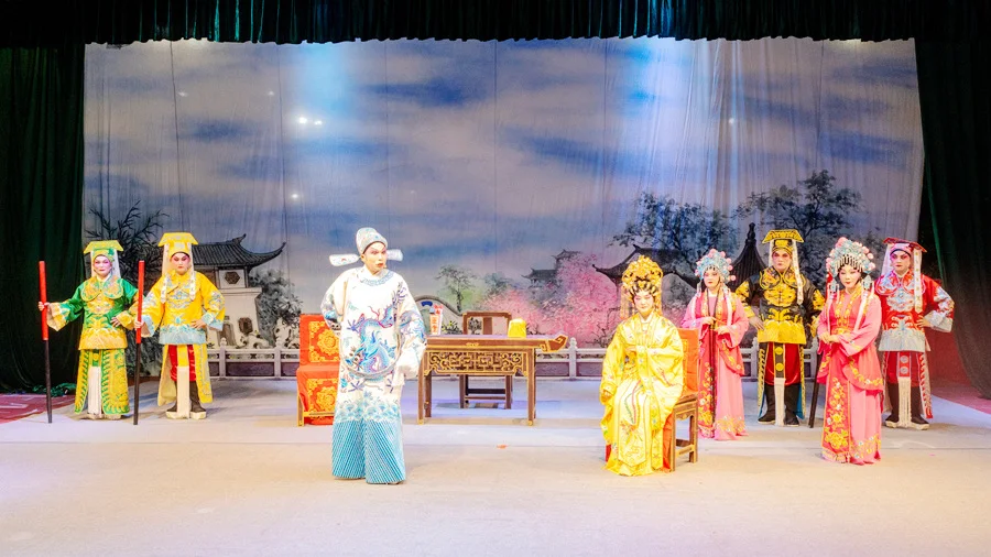 當地史料顯示,在清朝末期,粵曲在園洲靠東江一帶盛行,逐漸發(fā)展成排大戲、搭戲棚,粵曲演戲形式多樣。新中國成立初期,逢年過節(jié)都有粵曲表演,看大戲成為老一輩園洲人最重要的娛樂。