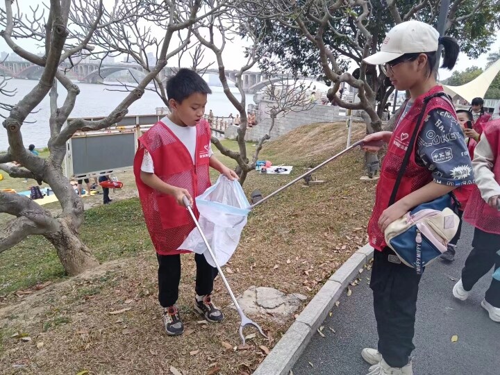 3月12日,惠州市第二小學(xué)開展“周末哪里去,一起做公益”撿跑活動,惠州市第二小學(xué)青年黨員教師、四年級部分學(xué)生及家長志愿者們,手持垃圾袋和垃圾鉗等撿跑工具,大手拉小手,分兩路沿著東江撿跑,見“圾”行事,將廢紙屑、煙頭、包裝袋、塑料瓶等垃圾撿起,并用垃圾袋分袋裝好。他們通過自己的點(diǎn)滴行動改善環(huán)境、美化家園,撿出文明、跑出精彩。