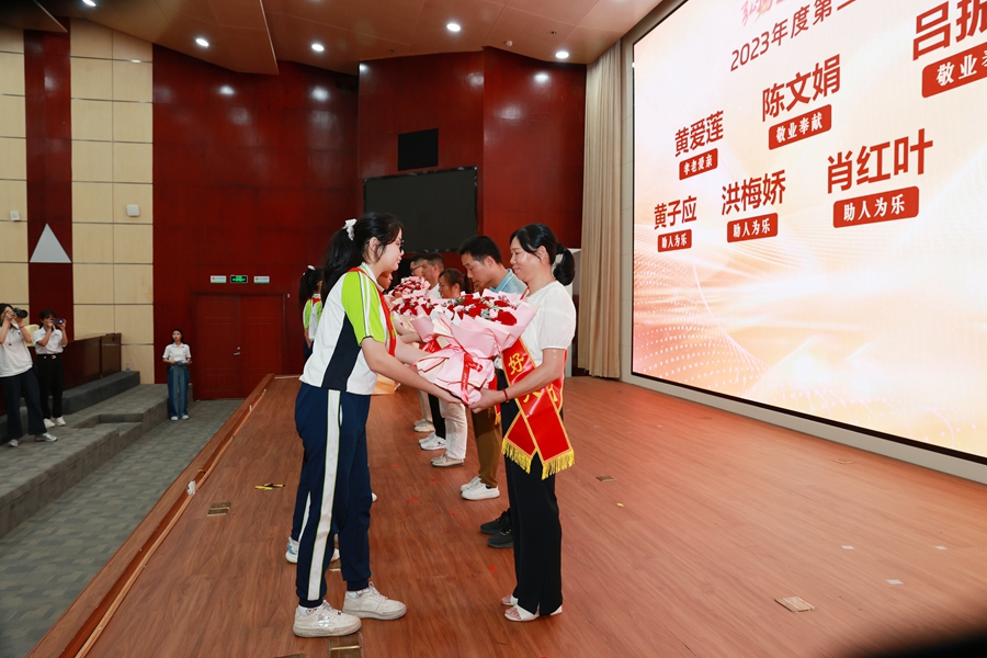 訪談環(huán)節(jié)過后,曾在“仲愷星火”比武大賽中獲得一等獎的志愿者祁瑞梅,為大家?guī)怼爸賽鹦腔稹毙v——《生命不息,行善不止》。活動還為2023年第一至第四季度“仲愷好人”獻花。