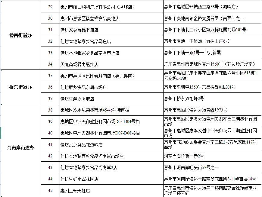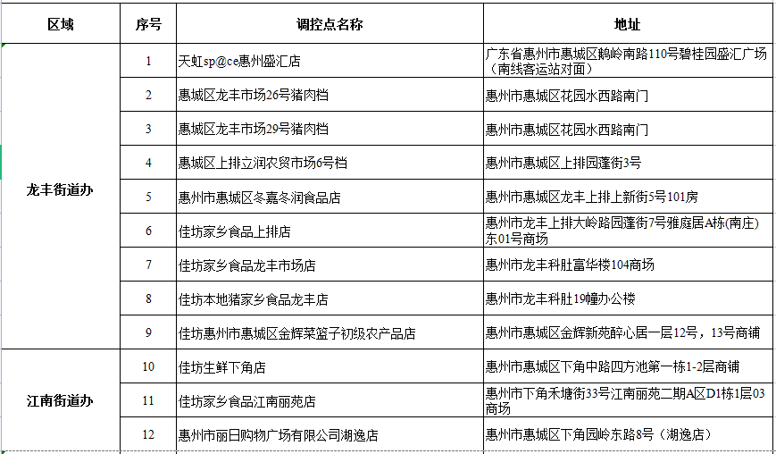 據(jù)介紹,50個調(diào)控點分別由市肉聯(lián)廠有限公司、佳坊農(nóng)產(chǎn)品有限公司、麗日購物廣場、天虹商場、匯綠鮮果蔬農(nóng)民專業(yè)合作社等企業(yè)承擔政府調(diào)控豬肉具體銷售工作。屆時,各調(diào)控點將會在適當位置懸掛“2023年春節(jié)期間政府價格惠民豬肉調(diào)控點”橫幅以及張貼“政府價格惠民豬肉調(diào)控價目表”。