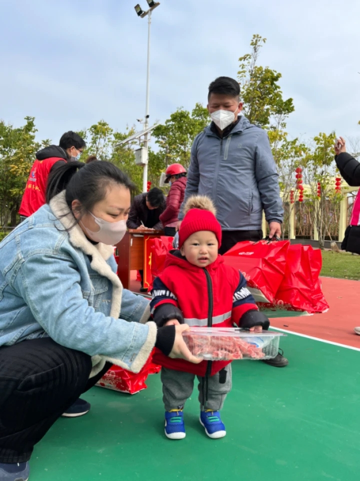小寶寶手捧豬肉,愛不釋手。為讓村民更加深刻地感受到鄉(xiāng)村振興帶來的好處,在春節(jié)來臨之際,金星村組織開展此次分豬肉活動,一方面給村民送新春福利,另一方面通過這一富有儀式感的活動,鼓勵村民繼續(xù)積極支持、參與鄉(xiāng)村振興,一起創(chuàng)造更加美好的生活。