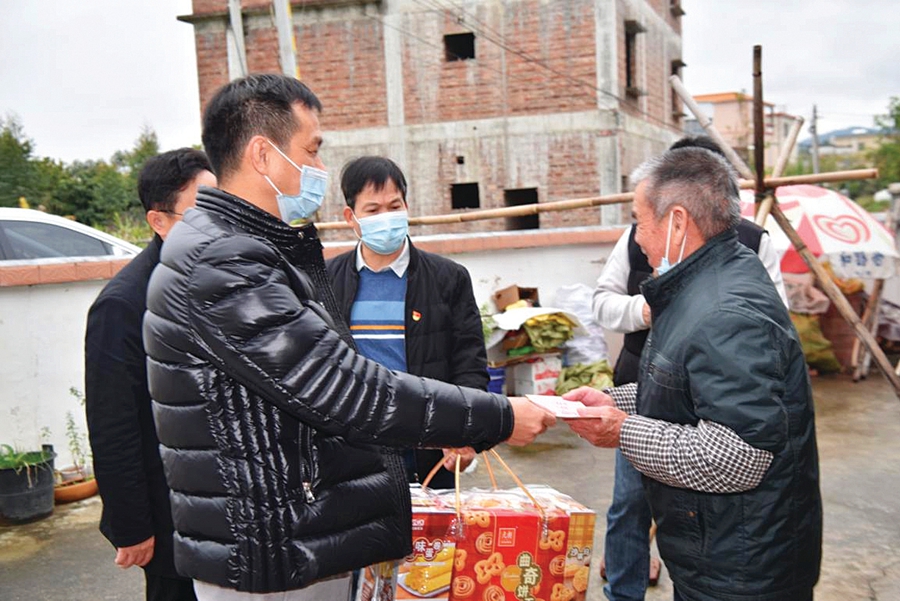 “你不要到處逛噢,現(xiàn)在病毒傳播很快,出門戴好口罩,做好個人防護。”1月11日上午10時42分,博羅縣橫河鎮(zhèn)橫河村田寮村民小組八旬老人劉爺爺的家中迎來了幾位客人,市工商聯(lián)(總商會)副主席、博羅縣園洲嘉和塑膠電子有限公司董事長劉少輝向他遞上慰問金、年貨,關心地詢問他的生活情況。