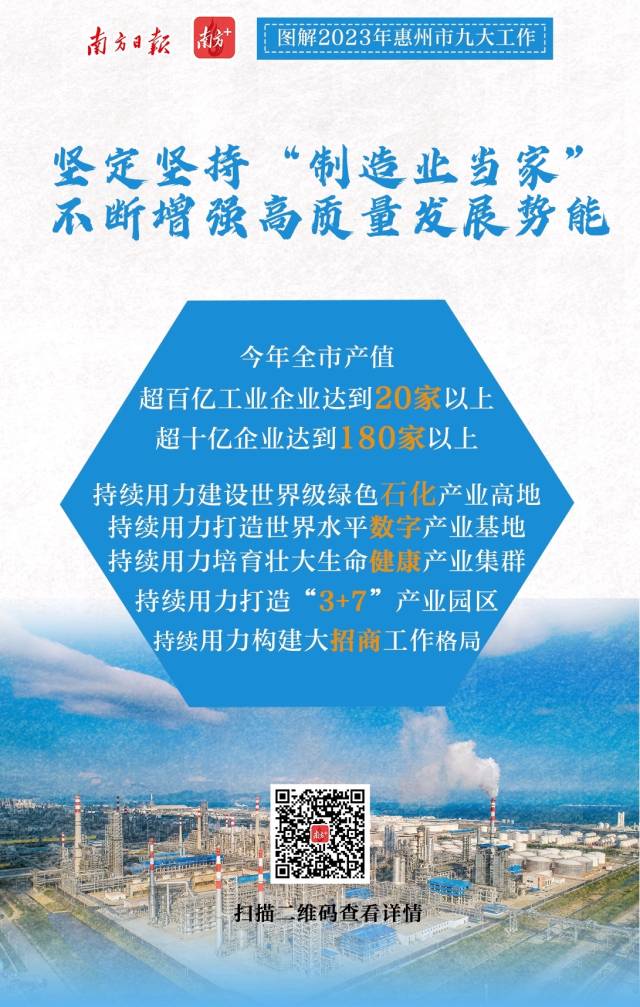 2月7日上午,惠州市第十三屆人民代表大會第三次會議開幕。會上,惠州市委副書記、市長溫金榮作市政府工作報告。惠州市政府工作報告提出,2023年重點(diǎn)聚焦九個方面重點(diǎn)工作,南方日報、南方+客戶端推出9張海報帶你速覽。