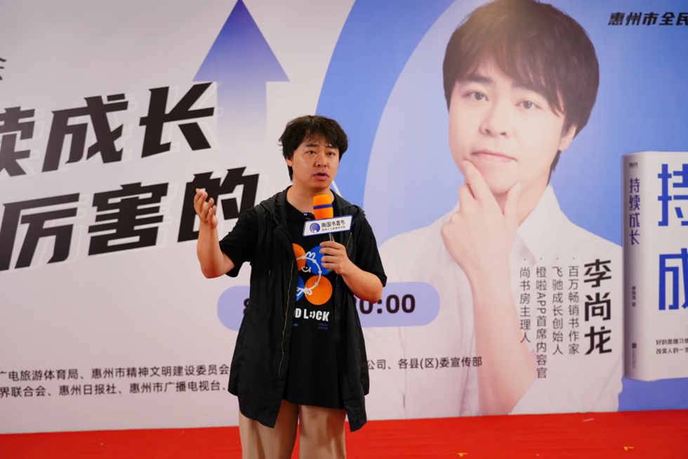 “第一次來惠州,非常高興。很久沒來南方了,從11年前當新東方老師開始,我講過無數(shù)場次,但從來沒有在這種場合下演講,所以今天會永生難忘。”惠州新華文化廣場一樓大廳燈火通明,李尚龍以打趣的方式開啟分享會。