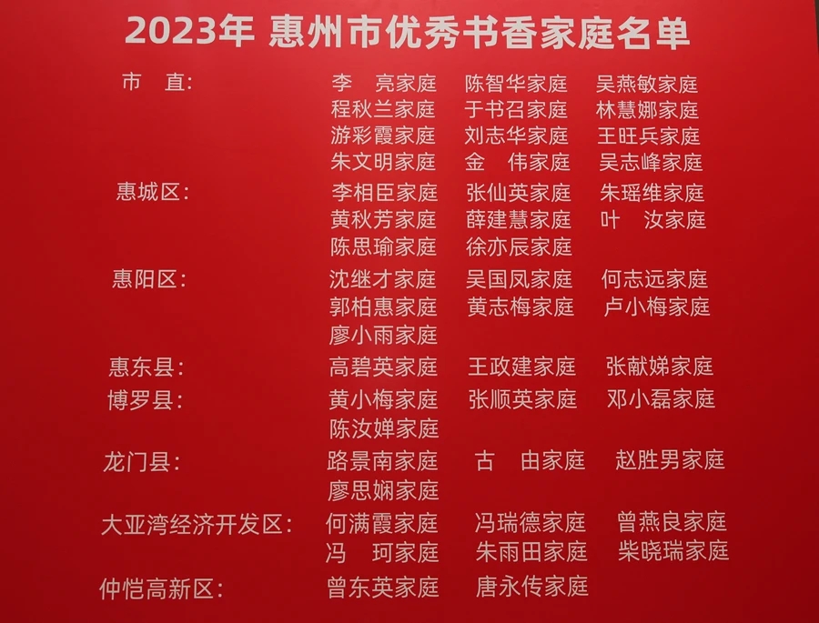 南國書香節(jié)丨2023年惠州市“優(yōu)秀書香家庭”揭曉