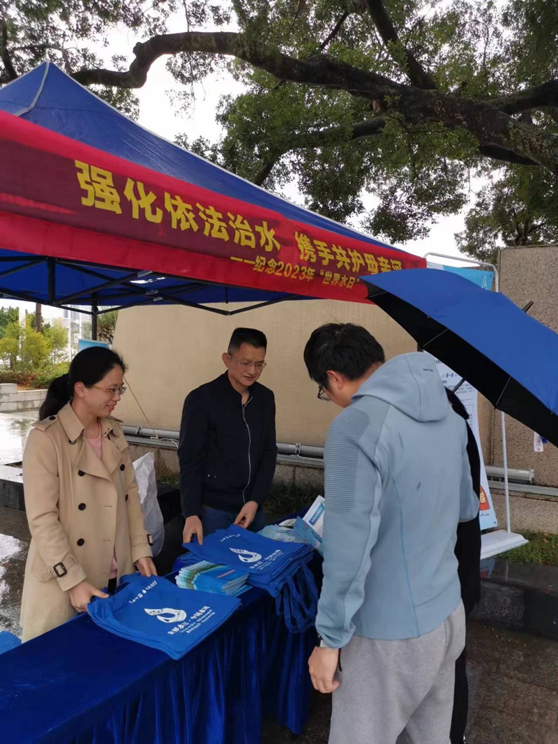 2023年3月26日,適逢第三十六屆“中國水周”,我國今年“世界水日”“中國水周”活動(dòng)主題為“強(qiáng)化依法治水,攜手共護(hù)母親河”。現(xiàn)場通過展板宣傳保護(hù)母親河和節(jié)水護(hù)水知識(shí),并向群眾發(fā)放《中國水利報(bào)》特刊、世界水日主題環(huán)保袋等宣傳資料,宣講《中華人民共和國水法》,展示“愛護(hù)河湖文明公約”,介紹家庭節(jié)水小竅門等,熱情解答廣大群眾提出的問題,倡導(dǎo)大家從身邊的點(diǎn)滴做起,用實(shí)際行動(dòng)保護(hù)身邊母親河?xùn)|江,自覺做到節(jié)約用水、合理用水。