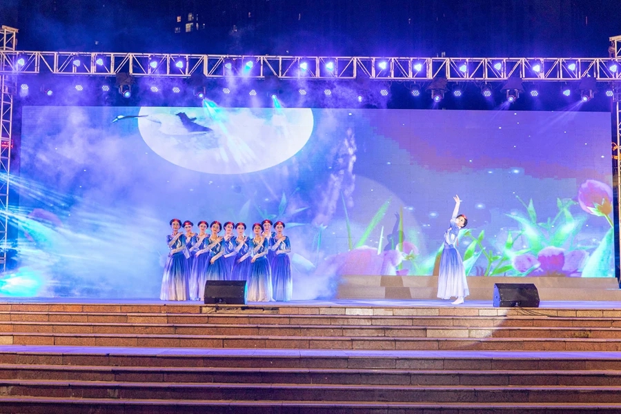 原創(chuàng)歌曲《不能錯過的美麗》掀起了晚會高潮,這是惠城文藝工作者2023年創(chuàng)作的惠城迎賓曲,唱山水鵝城,贊美詩意西湖,推介大美惠州;惠城區(qū)民間文藝家協(xié)會的會員帶來的器樂曲《彩云追月》,舒緩柔美的音樂勾勒出月色,以月之圓兆人之團圓,描繪花好月圓的良辰美景;街舞《國風》將活力的街舞與國風元素相融合,輕快的舞步與節(jié)奏的完美結合充分展現(xiàn)著當代年輕人的生機與活力,歌曲《咱村變化大》剛健樸實,具有嶺南特色,舒唱著惠城鄉(xiāng)村振興帶來的新面貌新風尚,為群眾奉獻一場視覺盛宴。