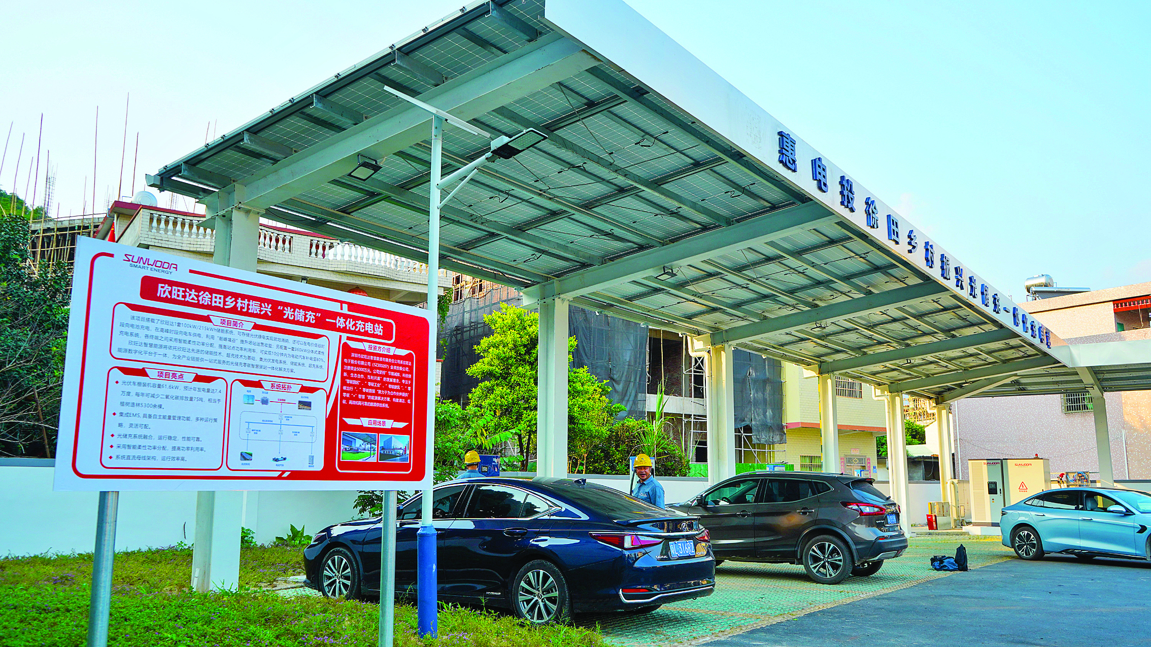 為適應農(nóng)村發(fā)展新需求,我市探索在“百千萬工程”典型村布設“光儲充一體化”項目。博羅縣福田鎮(zhèn)徐田村光儲充一體化項目投產(chǎn)運營,國慶假期累計充電8000kWh,服務車輛約200臺次;惠陽區(qū)平潭鎮(zhèn)新圩村以“政府引導+市場投入+村民參與”多方合作模式,租賃村民私宅屋頂集中連片建設光伏發(fā)電項目,并將公共場所如村委會大樓的發(fā)電所獲利潤部分用于補貼村民用電費用……今年以來,我市建成642個(農(nóng)村177個)“光儲充一體化”設施,在鄉(xiāng)村旅游旺地,既解決了群眾充電難題,又增加集體收入,更進一步推動了鄉(xiāng)村農(nóng)旅融合發(fā)展。