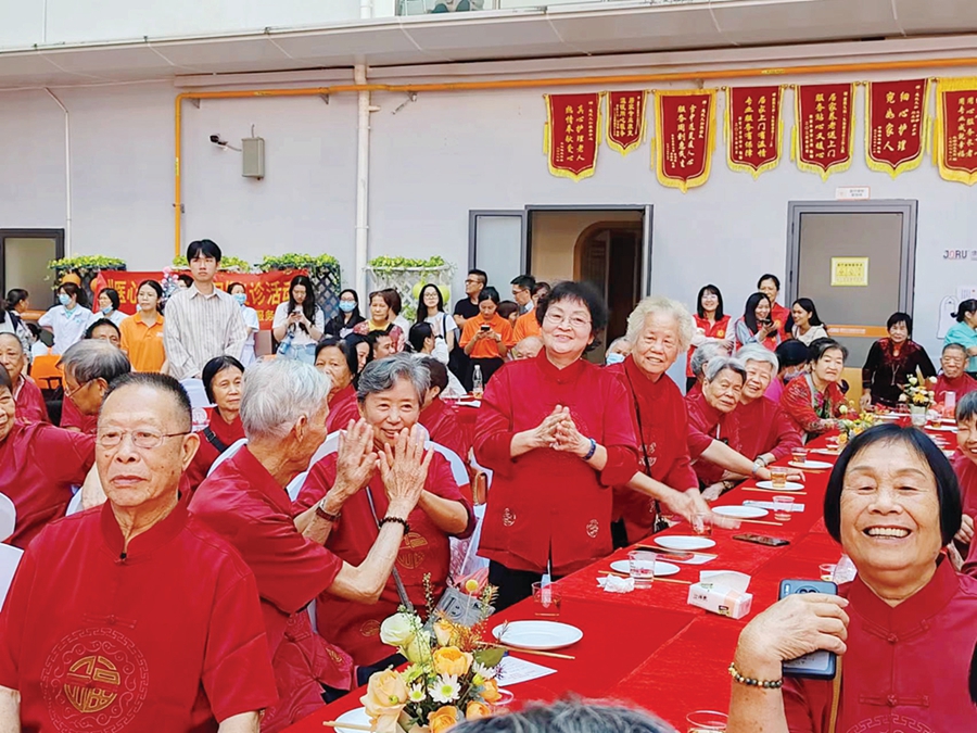 欣賞表演的同時,工作人員還為老人們送上茶點,有滋潤的龍眼雪梨水,清甜的紅豆豆腐花羹,可口的長壽面……老人們談笑風(fēng)生,吃得津津有味,他們相互慶賀、彼此祝福,臉上洋溢著對美好生活的憧憬。