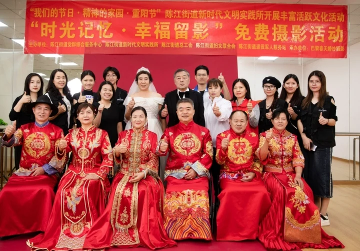 10月20日,陳江街道新時代文明實踐所在御湖社區(qū)開展“我們的節(jié)日·精神的家園·重陽節(jié)”豐富活躍文化生活——“時光記憶·幸福留影”活動,巴黎春天婚紗攝影免費提供技術(shù)支持,為御湖社區(qū)結(jié)婚30周年的14對夫妻免費拍攝婚紗照,通過活動的開展,讓這些相濡以沫的夫妻重溫年輕時光,感受愛情的甜蜜與美好。