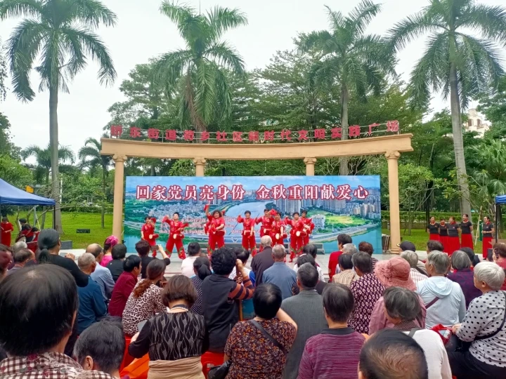 金秋重陽,濃濃敬老。為大力弘揚中華民族“尊老、敬老、愛老、助老”的傳統(tǒng)美德,在重陽佳節(jié)來臨之際,10月20日下午,惠城區(qū)橋東街道荷鄉(xiāng)社區(qū)黨委聯(lián)合橋東街道社會工作服務站和惠州市順緣養(yǎng)老服務有限公司,組織“回家”服務黨員在荷鄉(xiāng)社區(qū)新時代文明實踐廣場開展“回家黨員亮身份 金秋重陽獻愛心”志愿服務活動,為荷鄉(xiāng)社區(qū)老人送上美好的節(jié)日祝福和濃濃的關愛,吸引了300多名老年居民參與到本次活動中。