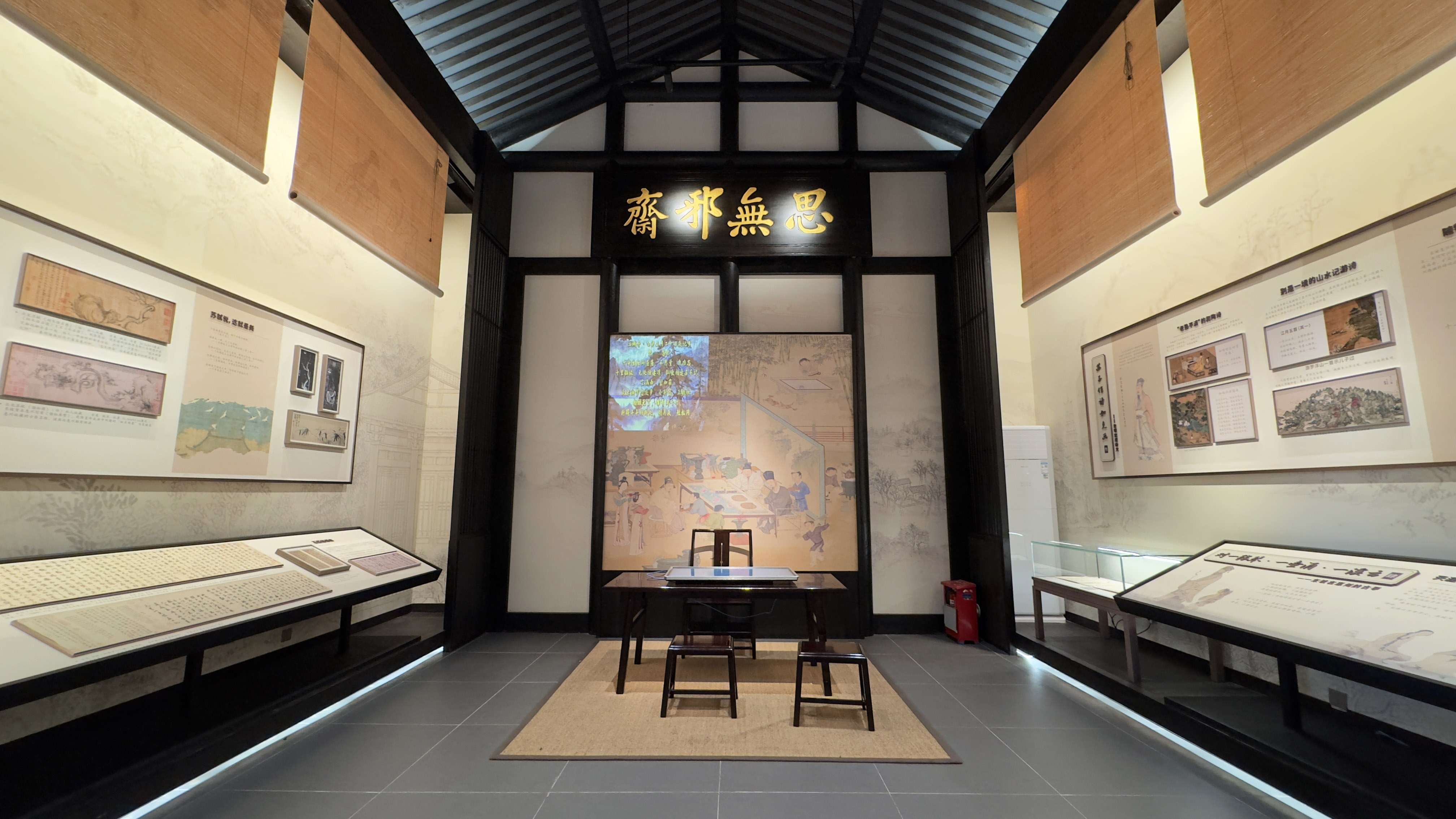 二展廳位于原館一館,這棟仿古建筑明亮通暢,外形古雅雄麗,莊重大方。該展廳以“不妨詩酒樂年華”為主題,通過書、畫、詩、琴、酒、茶,展示東坡緣何“不辭長作嶺南人”。走進(jìn)這個展廳,可以全面了解蘇東坡寓惠的生活細(xì)節(jié),游客可以在東坡啖荔雕塑前與東坡“對飲”合影、打卡拍照,可以在東坡家宴展區(qū),“品味”美食家蘇東坡的飲食之道,更可以一覽蘇東坡在惠州如何寫詩作畫、快意江湖。正如展廳資料介紹,惠州的歲月給了東坡生活上更多的閑暇,他因緣自適,把“寓居”過成了“仙居”,既有書畫詩酒茶,亦不失人間煙火氣,從詩情畫意里感受萬物樂趣,在三餐茶飯里品出絕妙風(fēng)味。