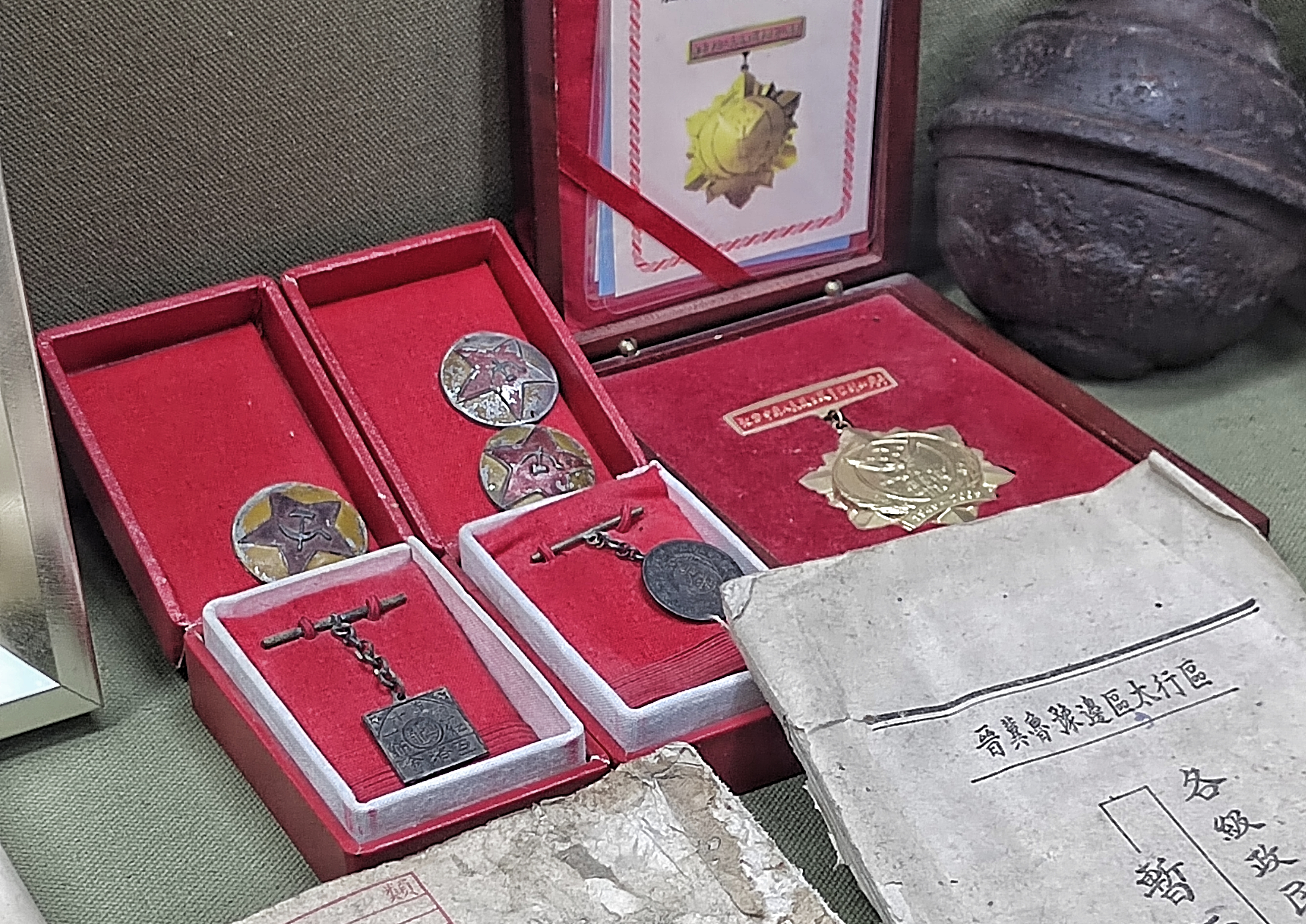 值得注意的是,該館收藏最多的軍事證章是關于抗戰(zhàn)的,如八路軍徽章,延安抗大、南泥灣大生產等模范英雄的勛章,一枚枚被擦得锃亮的徽章,折射出中國抗日軍民的同仇敵愾。