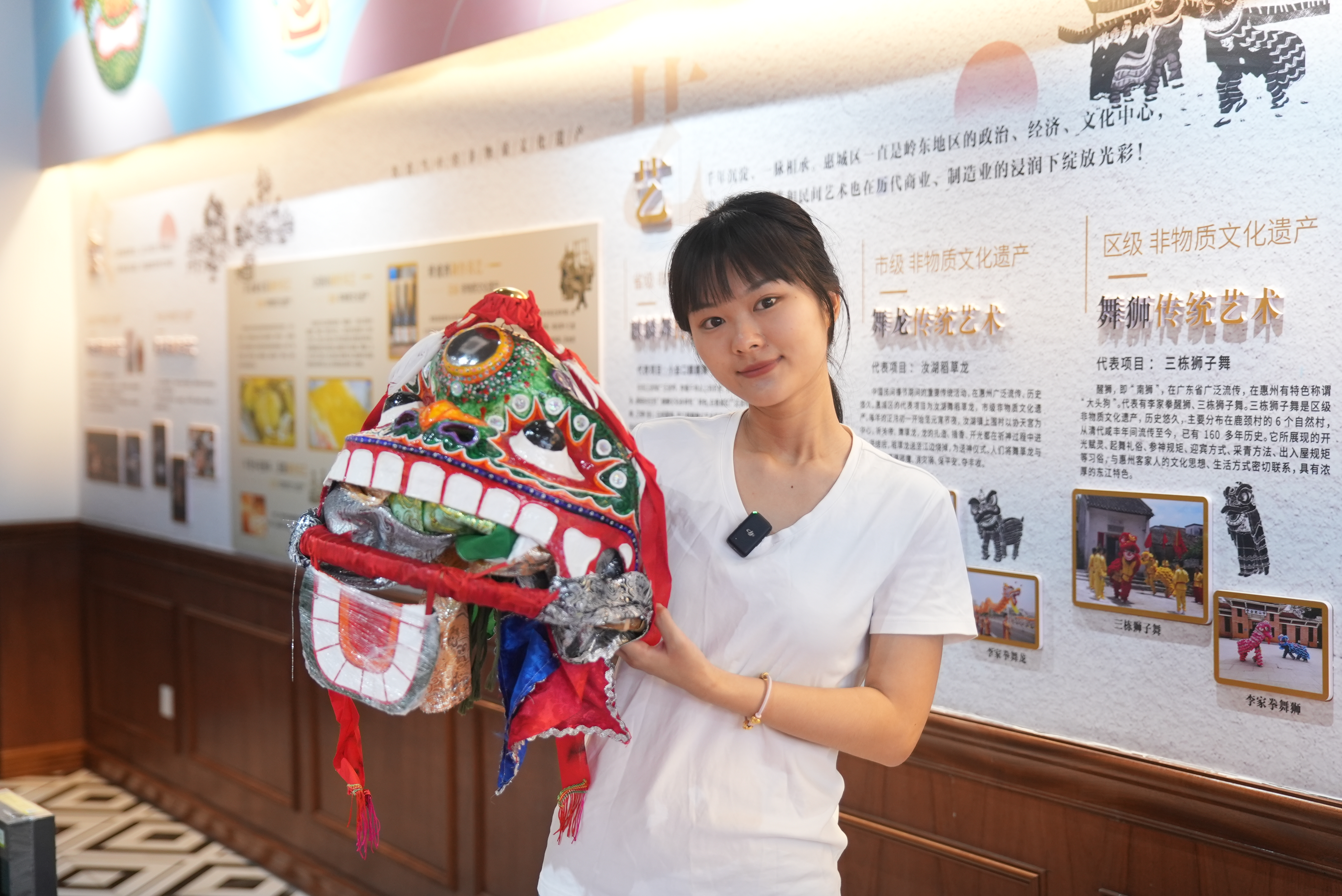 同時(shí),館內(nèi)通過大量文圖、場(chǎng)景、模型等,展示非遺的文化魅力。這里圖文并茂地介紹惠城區(qū)32項(xiàng)非遺傳承情況,設(shè)置了麒麟制作、活字印刷、剪紙?bào)w驗(yàn)等非遺互動(dòng)空間,在八仙桌旁觀賞仿真惠州菜,在“武館”里窺見習(xí)武之人的剛毅。