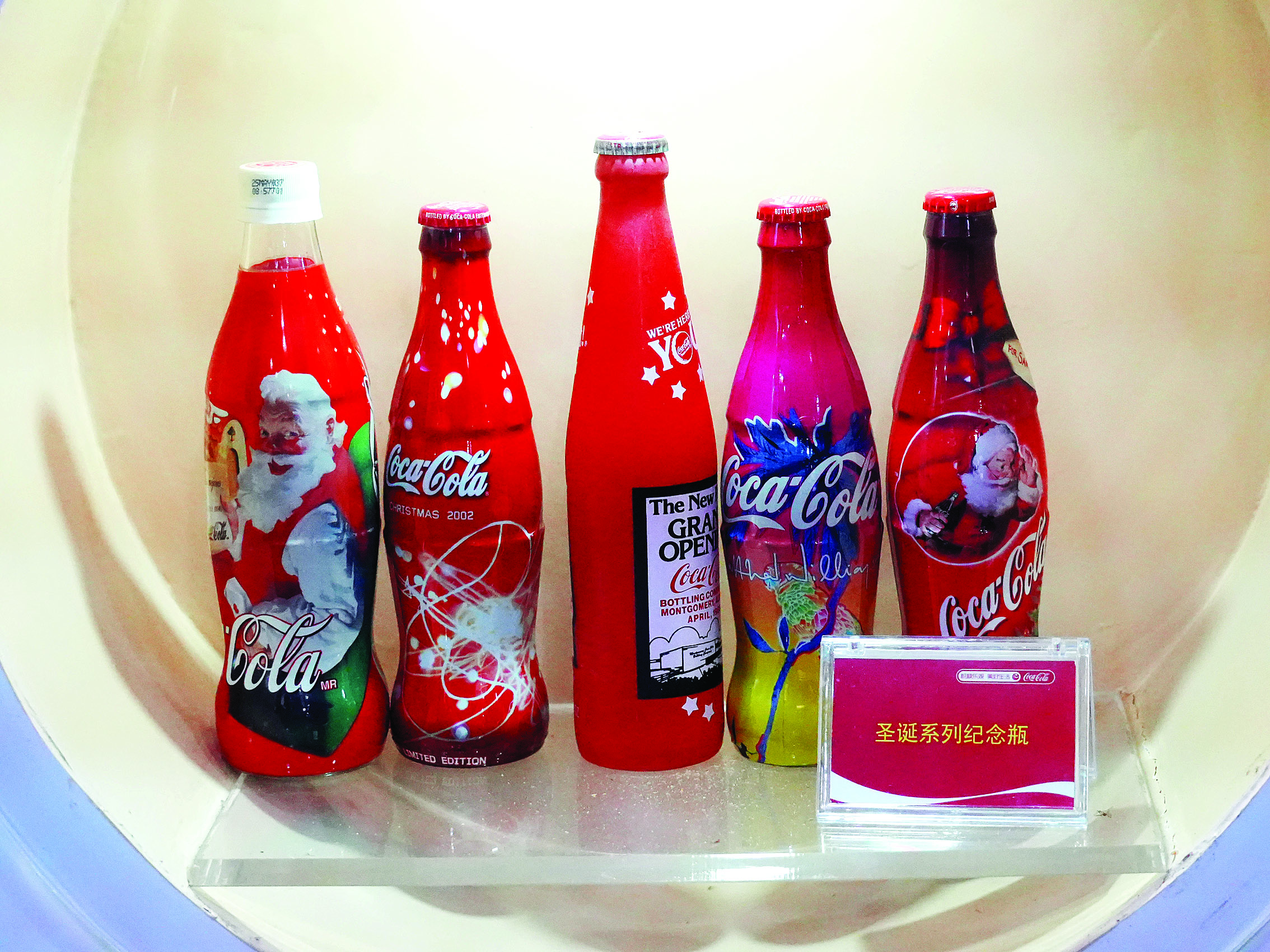 記者看到,這些從世界各地收集而來的瓶瓶罐罐上,記錄著重要賽事、紀(jì)念日、游戲主題等,而且大多是限量版,具有紀(jì)念價值。四季瓶、新春祝福罐、地標(biāo)瓶……形形色色的可樂瓶別具一格。清明上河圖、國風(fēng)藝術(shù)、城市風(fēng)光、紅艷艷的荔枝果……充滿中國特色的可樂瓶尤其吸睛。借由可口可樂瓶,人們看到了工業(yè)生產(chǎn)的創(chuàng)意藝術(shù)詮釋。
