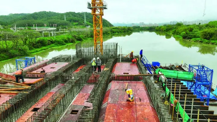 龍門大橋新建工程項(xiàng)目施工現(xiàn)場。