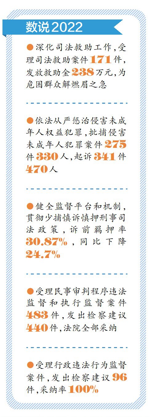 市檢察院與市婦聯(lián)會簽《關(guān)于開展困難婦女群體專項司法救助工作的意見》,形成救助合力。深化司法救助工作,受理司法救助案件171件,發(fā)放救助金238萬元,為危困群眾解燃眉之急。深入貫徹未成年人保護(hù)“兩法”,依法從嚴(yán)懲治侵害未成年人權(quán)益犯罪,批捕侵害未成年人犯罪案件275件330人,起訴341件470人;結(jié)合辦案推動強(qiáng)制報告制度、教職員工入職查詢制度落地落實;錄制法治云課堂,為全市中小學(xué)生送上“自護(hù)大禮包”;針對校園周邊商鋪售賣抽獎游戲玩具等亂象,迅速推動開展專項監(jiān)督檢查,凈化校園周邊環(huán)境;針對嚴(yán)重監(jiān)護(hù)失職,發(fā)出《督促監(jiān)護(hù)令》95份,有效促進(jìn)家庭教育。