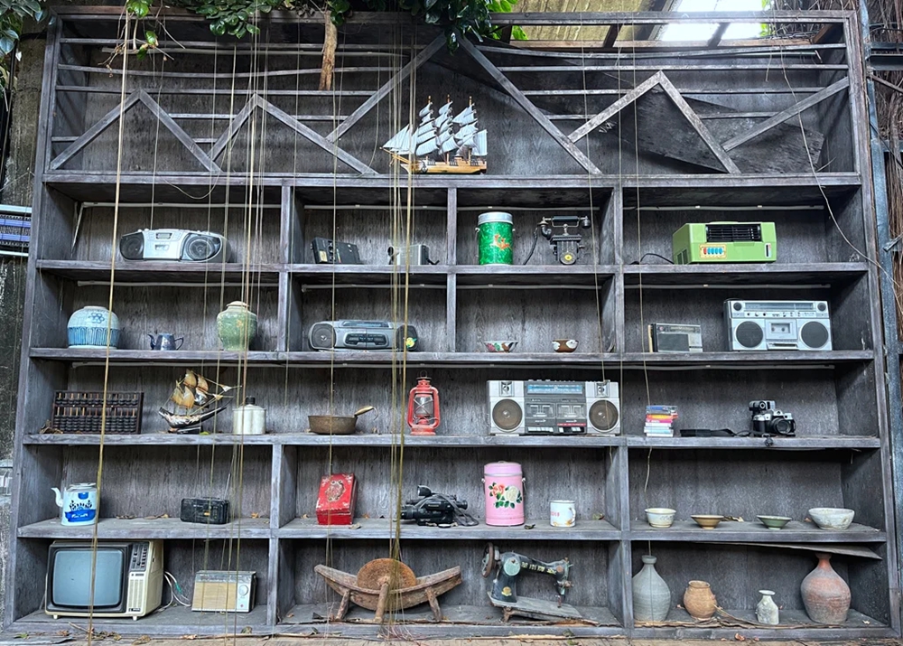“潛珍閣”利用老船廠遺留的柱、梁、建筑基礎(chǔ)打造成新的公共空間,輪機(jī)車間成為了品茗交流之處,鑄造車間變成了工藝品展覽室——鍋碗瓢盆、桌椅板凳床、琴棋書畫、炊具農(nóng)具,各式小家電,還有花轎、食格、盒籮等惠州民間舊式婚嫁習(xí)俗物品等,各種各樣的老物件,看似雜亂堆疊實(shí)則頗有心思組合,令人目不暇接。市民游客穿行其中,每個(gè)人都能在這里找到有關(guān)童年、成長的打開方式。這里經(jīng)常有收藏“發(fā)燒友”來交流,也吸引了不少文化人士來參觀。