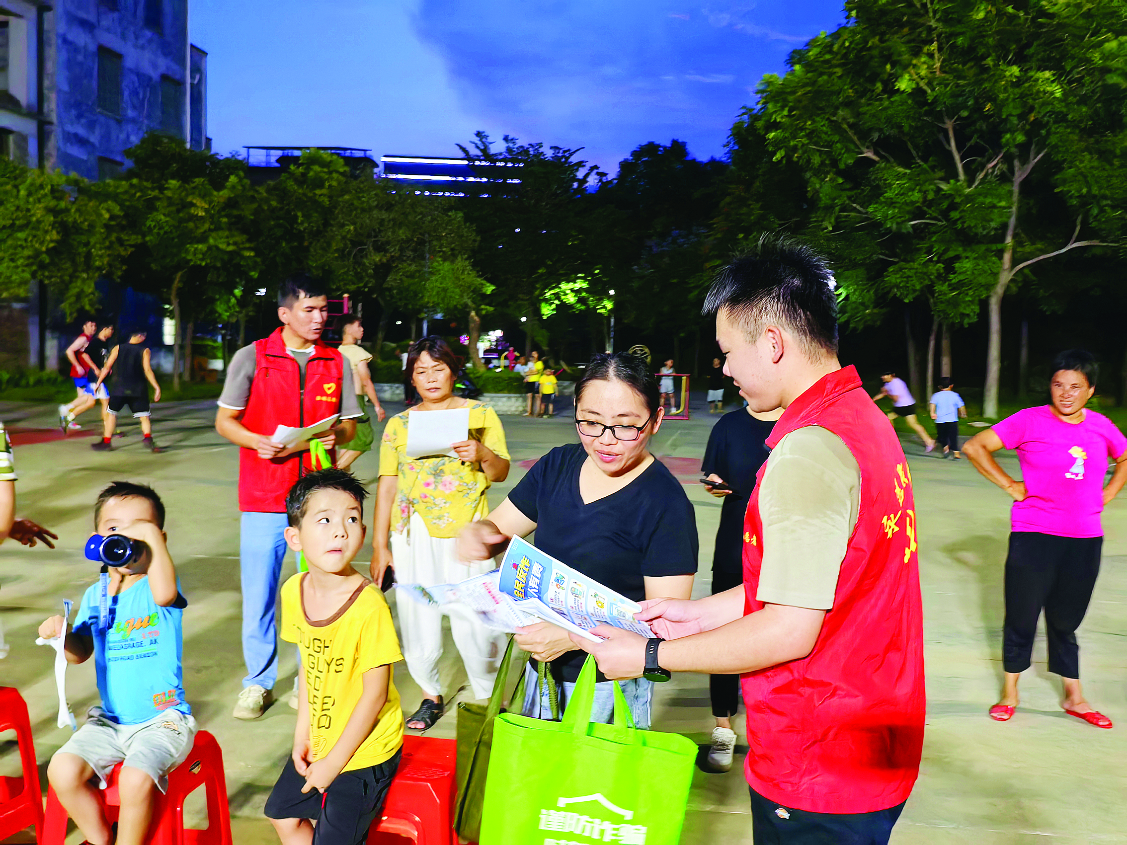 “今晚‘住讀’,我們?nèi)ヒ故锌纯础!?0月16日晚,鐘小君戴上工作牌,走在瀝林鎮(zhèn)塘角夜市街里,與干部職工和巡邏隊一起守護轄區(qū)平安。