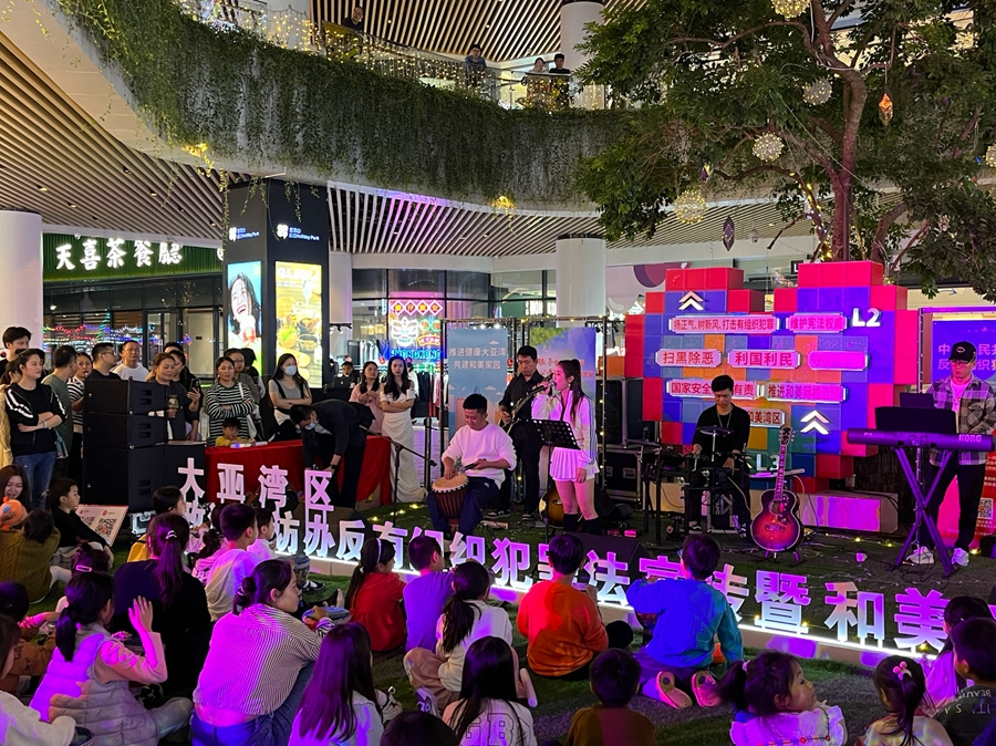 12月2日晚,第一場(chǎng)和美音樂(lè)會(huì)在澳頭濱海公園唱響,成為當(dāng)天晚上濱海公園夜市的亮點(diǎn);12月4日晚,第二場(chǎng)和美音樂(lè)會(huì)在大亞灣翡翠山益田廣場(chǎng)如期舉行。《曾經(jīng)的你》《孤勇者》……一首首耳熟能詳?shù)慕?jīng)典歌曲輪番上演,讓觀眾們大飽耳福,大家都忍不住跟著一起哼唱,在音樂(lè)的微光中領(lǐng)略感動(dòng)與激情。“當(dāng)你參加有組織犯罪,你的明天危險(xiǎn)、危險(xiǎn),想要好嗎,還是更差,對(duì)你而言是一轉(zhuǎn)念,不要去觸碰法律邊緣,這是永遠(yuǎn)的底線(xiàn)……”歌手還演唱了融入《反有組織犯罪法》內(nèi)容的改編版《平凡之路》,受到群眾好評(píng)。