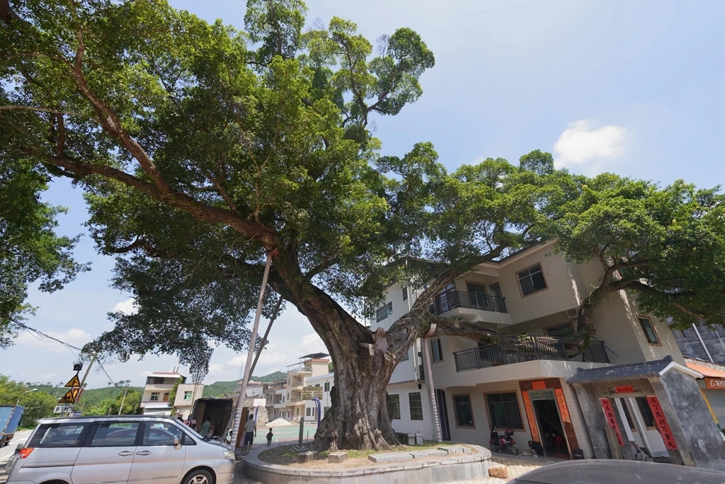 在惠州市龍門縣麻榨鎮(zhèn)中心村有一株超過千歲的古樹。村民重建新房時不惜“缺一個角”,少一個房間,也要給千年古樹生長騰挪位置。資料圖片