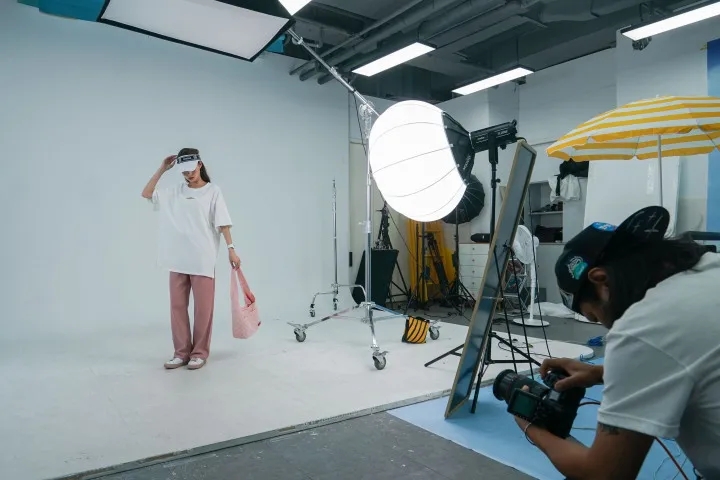 旭日集團電貿(mào)攝影工作室,工作人員正在拍攝產(chǎn)品。