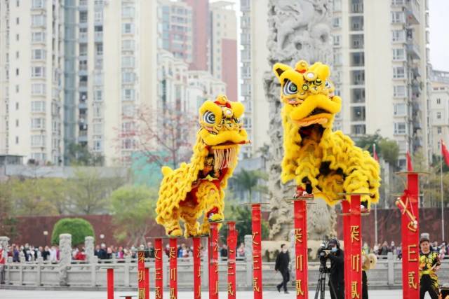 人們?cè)谙矐c日子里用舞獅龍來(lái)祈禱獅子的保佑。一件花團(tuán)錦舞獅子,是中國(guó)優(yōu)秀的民間藝術(shù),每逢新春佳節(jié)或集會(huì)慶典,民間都以獅舞前來(lái)助興祈福。