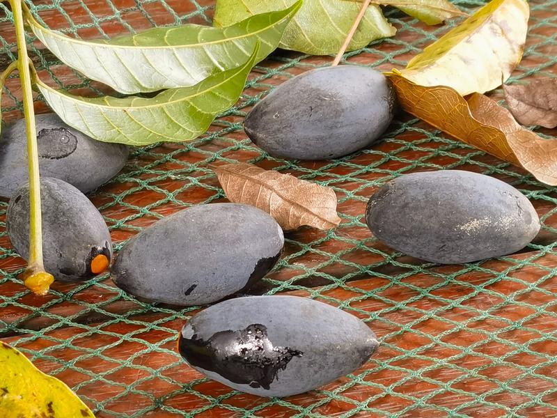 “打?yàn)鯔焓求w力活,也是技術(shù)活,既考體力,也考眼力。”高橋村村民阿明生于1989年。這些年,他已經(jīng)從父親那里接過(guò)了衣缽,家里的烏欖基本都由他采收。他說(shuō),烏欖烏黑烏黑的,藏在樹(shù)葉下,特別光線不好時(shí),就更難發(fā)現(xiàn)了。連日來(lái),每天清晨,他吃過(guò)早餐就和父親一起去打?yàn)鯔欤?xì)網(wǎng)、竹竿、梯子是打?yàn)鯔斓谋貍涔ぞ摺Kf(shuō),年景好時(shí),一棵古欖樹(shù)可采烏欖近千斤,今年烏欖的結(jié)果情況并不理想,“烏欖有的鮮銷,但更多的是腌制后再銷售。腌制后的烏欖是一種美味,是很好的下飯菜。”