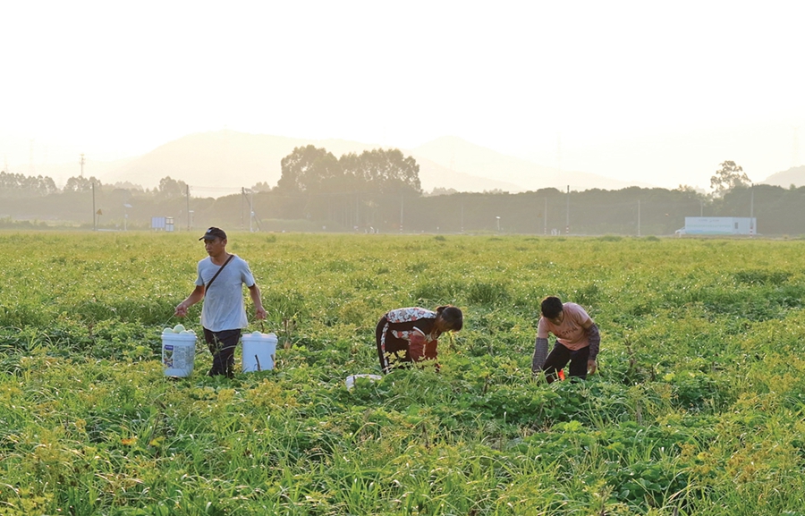 中午11時許,采收工作已經(jīng)持續(xù)了5個多小時,看著基地轉(zhuǎn)運場堆如小山的白香瓜,李院樂擼起衣角,擦了擦滿臉的大汗,坐在三輪車上和記者聊起了往事。“我是2006年從部隊退役的,退役后去珠海的商超做過一段時間生鮮果蔬的供應鏈經(jīng)理,積累了一些工作經(jīng)驗后,2015年自己出來創(chuàng)業(yè),做生鮮果蔬的供應鏈管理和相關(guān)的電商發(fā)貨。”李院樂說,隨著鄉(xiāng)村振興戰(zhàn)略的實施,這些年農(nóng)村變化很大,農(nóng)村的經(jīng)營模式轉(zhuǎn)變也很大,以前是憑借自己的經(jīng)驗種,然后等中間商上門收購,質(zhì)量價格都難有保障。現(xiàn)在隨著“百千萬工程”的實施,很多農(nóng)村開始抱團發(fā)展,不少村都有了自己的合作社,也開始有了建立農(nóng)產(chǎn)品品牌的意識。