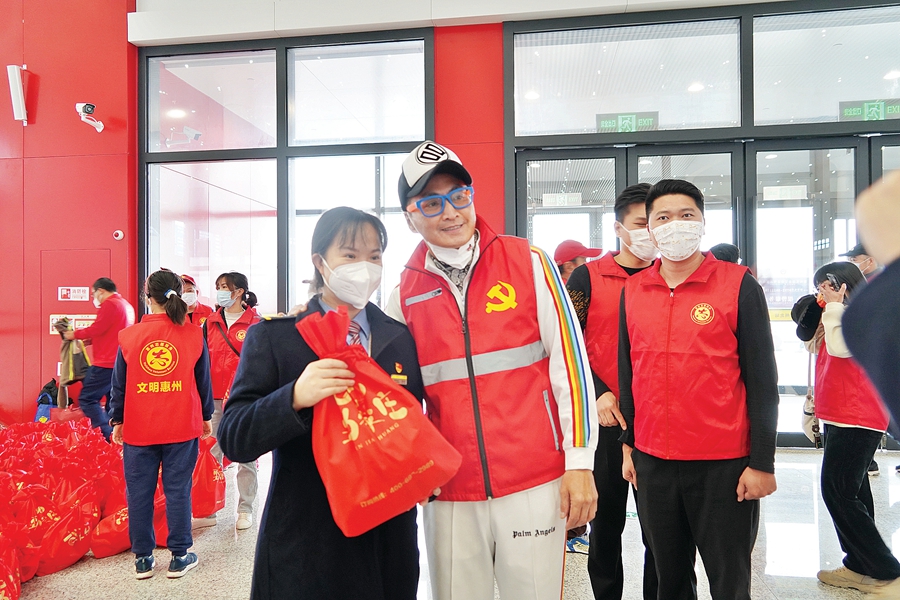“惠州感謝你,辛苦了,送份小禮物給你。”“一路平安,新年快樂!”“紅紅的圍巾送給你,帶著這份溫暖回家。”“惠州需要你們,節(jié)后再來惠州哦。”1月11日下午,贛深高鐵惠州北站的不少旅客收到一份“愛心大禮包”。當(dāng)天,由市委宣傳部、市志愿服務(wù)聯(lián)合會主辦的“惠州有禮,平安回家”春運志愿服務(wù)活動在此舉行,志愿者送出的一份又一份禮包,溫暖了一個又一個歸家的人,也讓惠州這座全國文明城市多了幾分溫情。