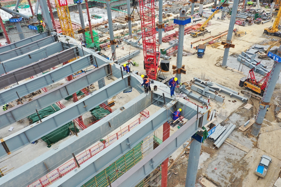 站房鋼結(jié)構(gòu)屋蓋鋼梁吊裝計劃下月完成