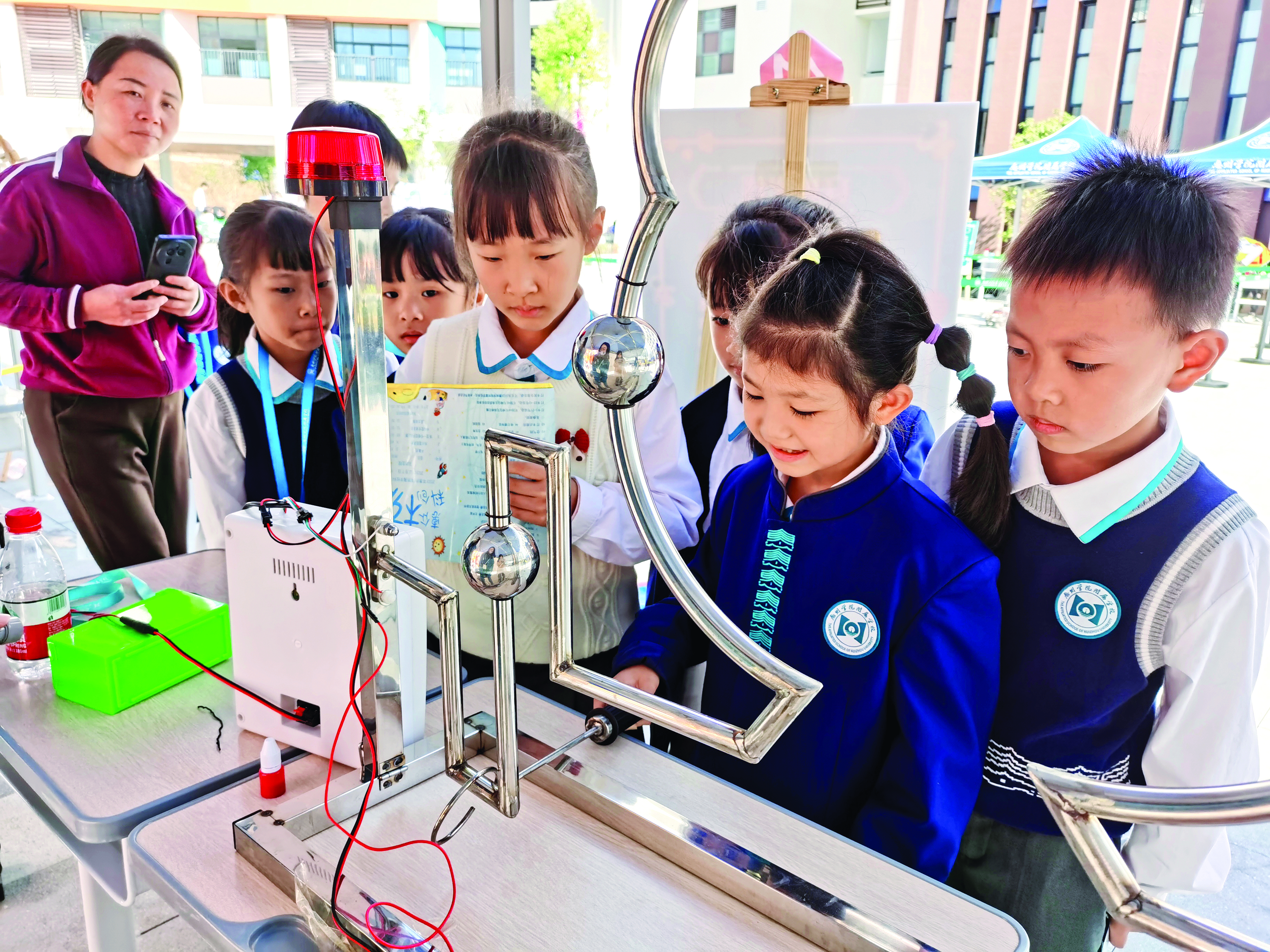 小學(xué)生在校園內(nèi)沉浸式體驗(yàn)科技的樂趣。惠州日報記者葉麗莎 攝