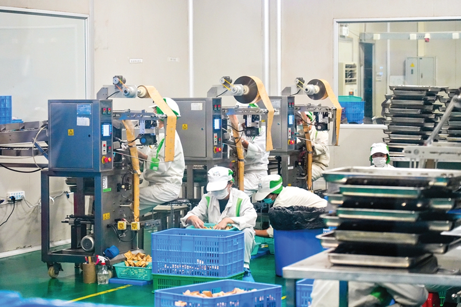 勁家莊食品生產(chǎn)車間員工在包裝產(chǎn)品。惠州日報記者羅劍業(yè) 攝