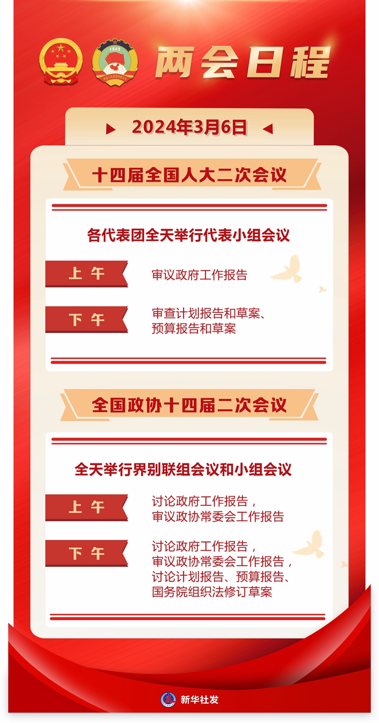 兩會日程預(yù)告丨3月6日:審議和討論政府工作報告 人代會審查計劃報告和預(yù)算報告