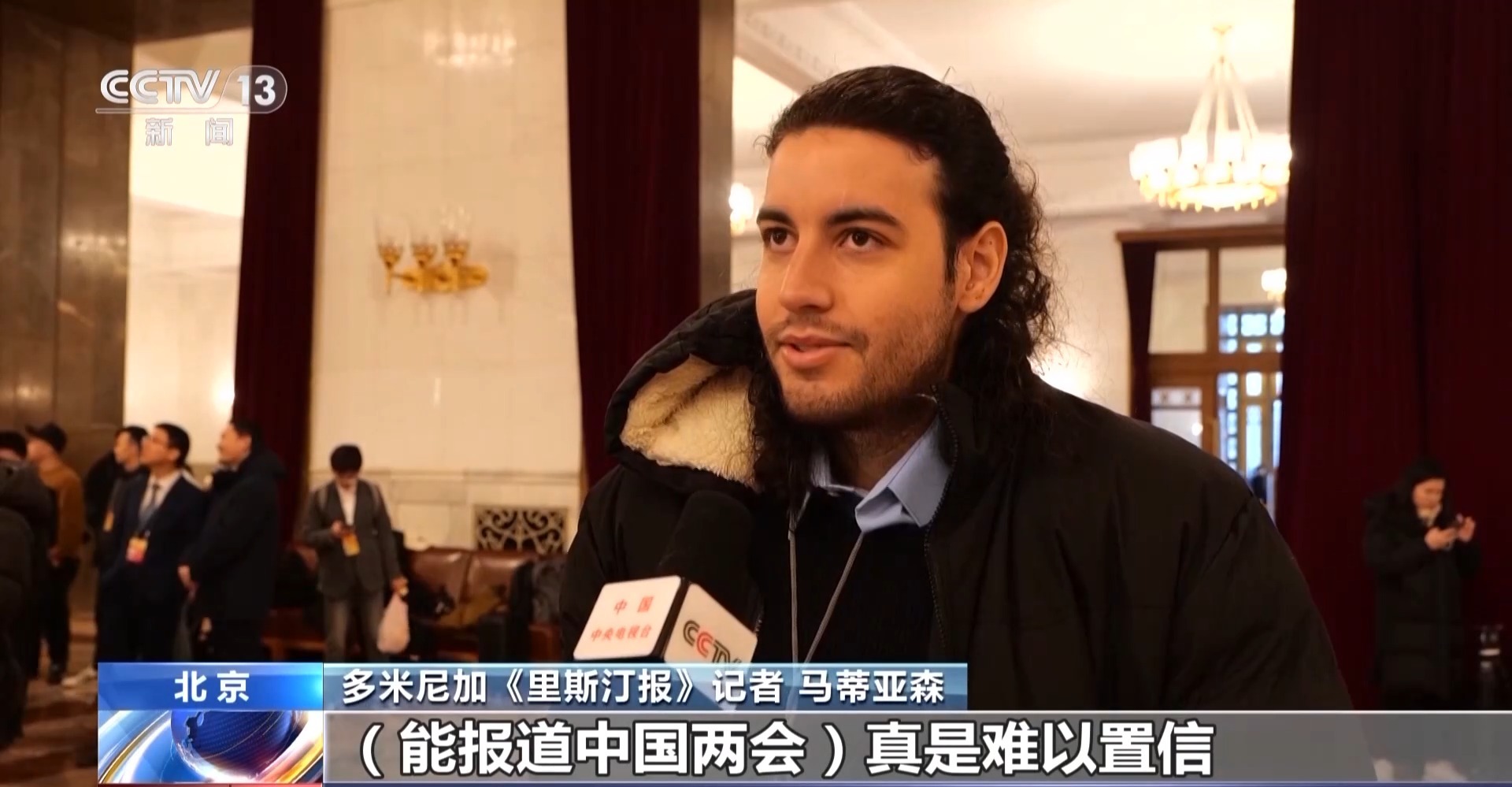 多米尼加《里斯汀報(bào)》記者 馬蒂亞森:(能報(bào)道中國兩會(huì))真是難以置信。這(中國兩會(huì))對中國人民,以及多米尼加和拉丁美洲人民來說,都是一件大事。因?yàn)橹袊鞯暮芏鄾Q定,會(huì)對拉丁美洲和多米尼加產(chǎn)生影響。