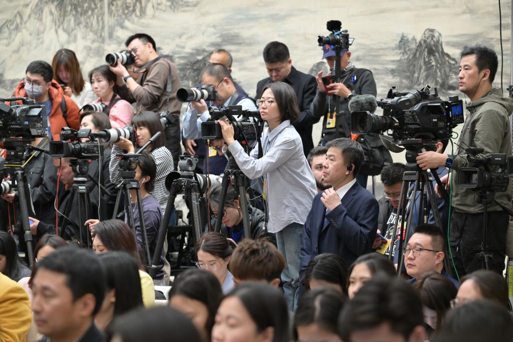 3月4日,十四屆全國(guó)人大二次會(huì)議在北京人民大會(huì)堂舉行新聞發(fā)布會(huì)。大會(huì)發(fā)言人婁勤儉就大會(huì)議程和人大工作相關(guān)問題回答中外記者的提問。這是記者在發(fā)布會(huì)上采訪。