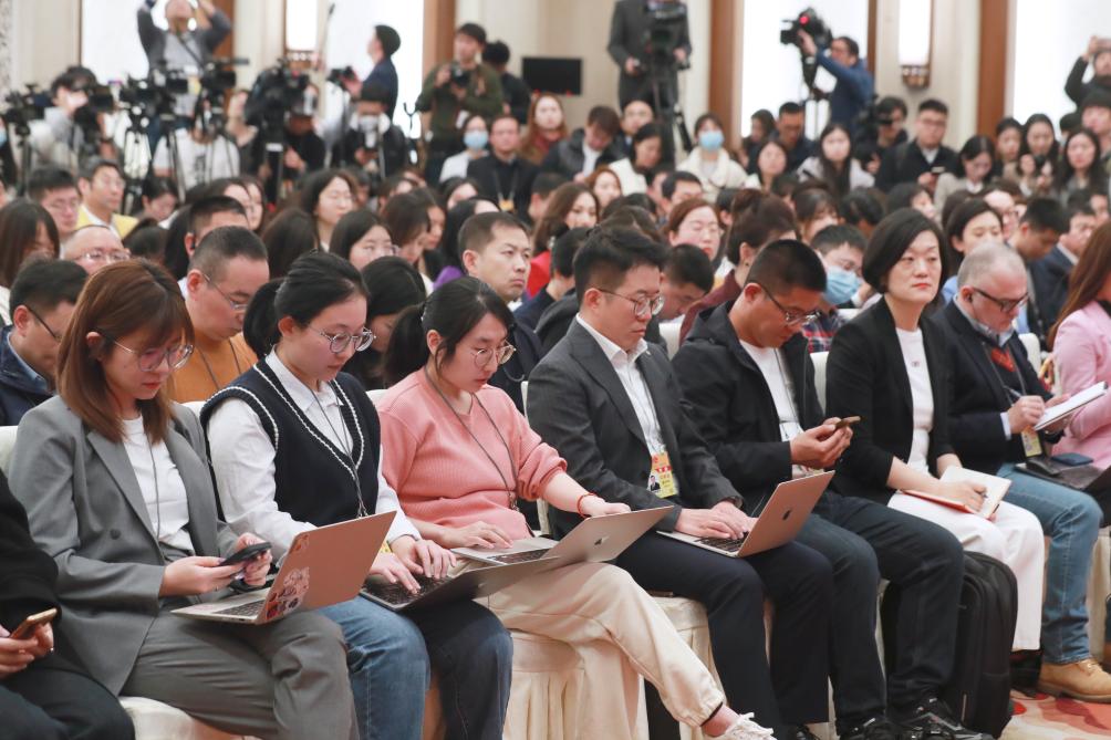 3月4日,十四屆全國(guó)人大二次會(huì)議在北京人民大會(huì)堂舉行新聞發(fā)布會(huì)。大會(huì)發(fā)言人婁勤儉就大會(huì)議程和人大工作相關(guān)問題回答中外記者的提問。這是記者在發(fā)布會(huì)上提問。