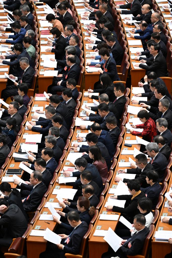 3月5日,第十四屆全國人民代表大會第二次會議在北京人民大會堂開幕。這是代表們在認真聽會。