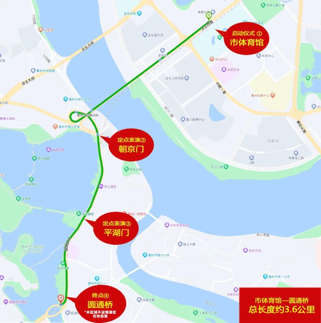 惠州市體育館起、經(jīng)過(guò)惠州大橋