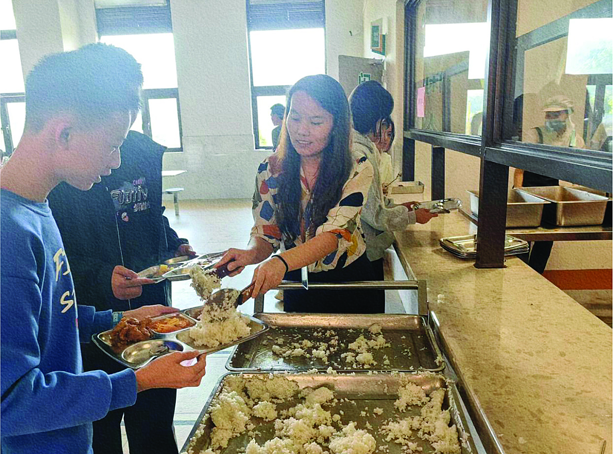 大亞灣西區(qū)第二實驗學校學生在擴容后的教師食堂用餐。