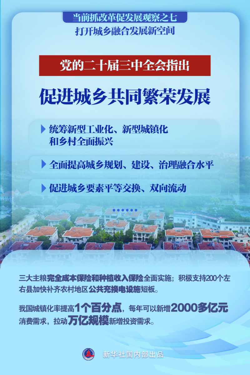 黨的二十屆三中全會(huì)審議通過(guò)的《中共中央關(guān)于進(jìn)一步全面深化改革、推進(jìn)中國(guó)式現(xiàn)代化的決定》,強(qiáng)調(diào)“必須統(tǒng)籌新型工業(yè)化、新型城鎮(zhèn)化和鄉(xiāng)村全面振興,全面提高城鄉(xiāng)規(guī)劃、建設(shè)、治理融合水平,促進(jìn)城鄉(xiāng)要素平等交換、雙向流動(dòng),縮小城鄉(xiāng)差別,促進(jìn)城鄉(xiāng)共同繁榮發(fā)展”。