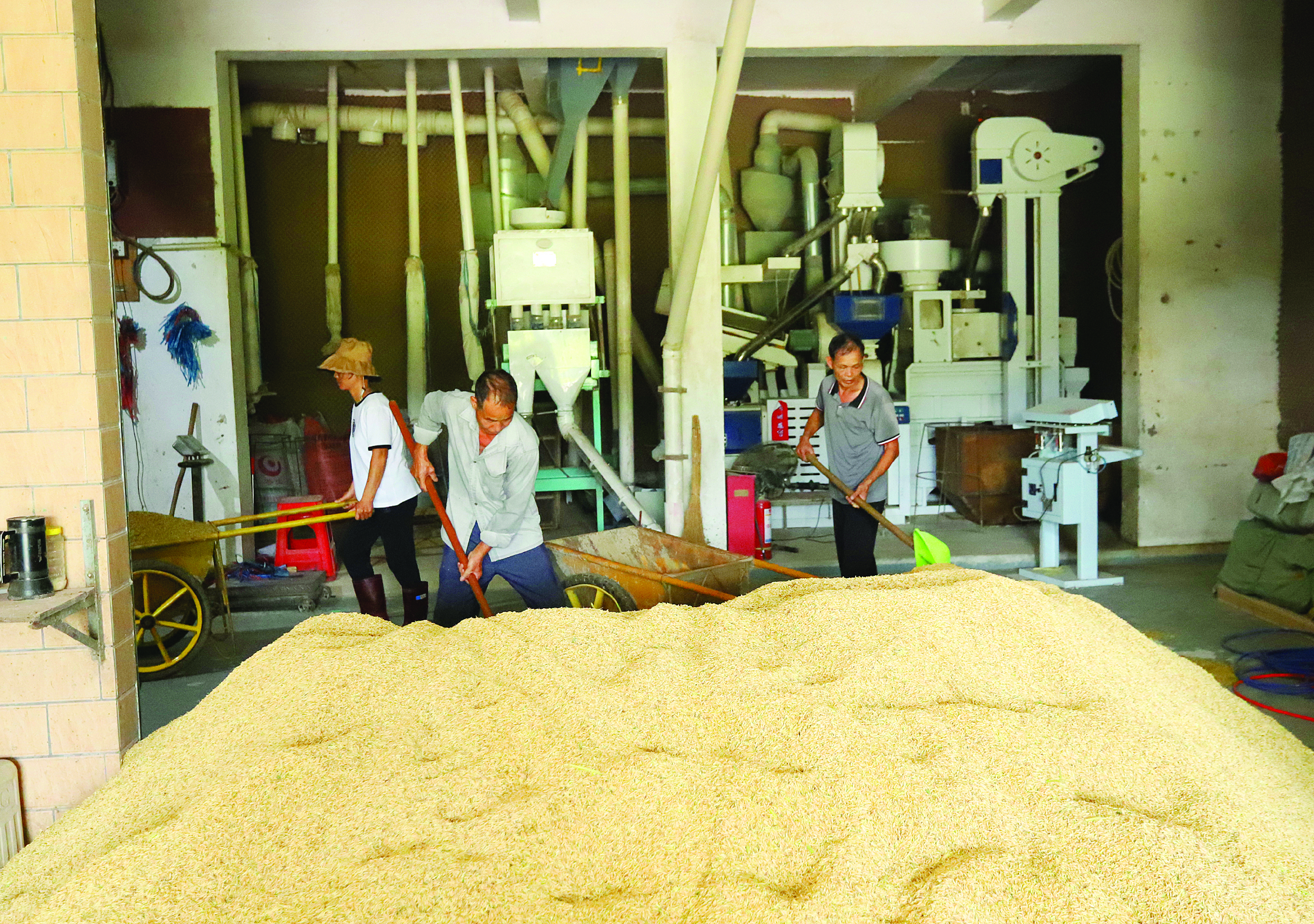 富硒水稻即將裝車進(jìn)行烘干。惠州日?qǐng)?bào)記者鐘暢新 攝