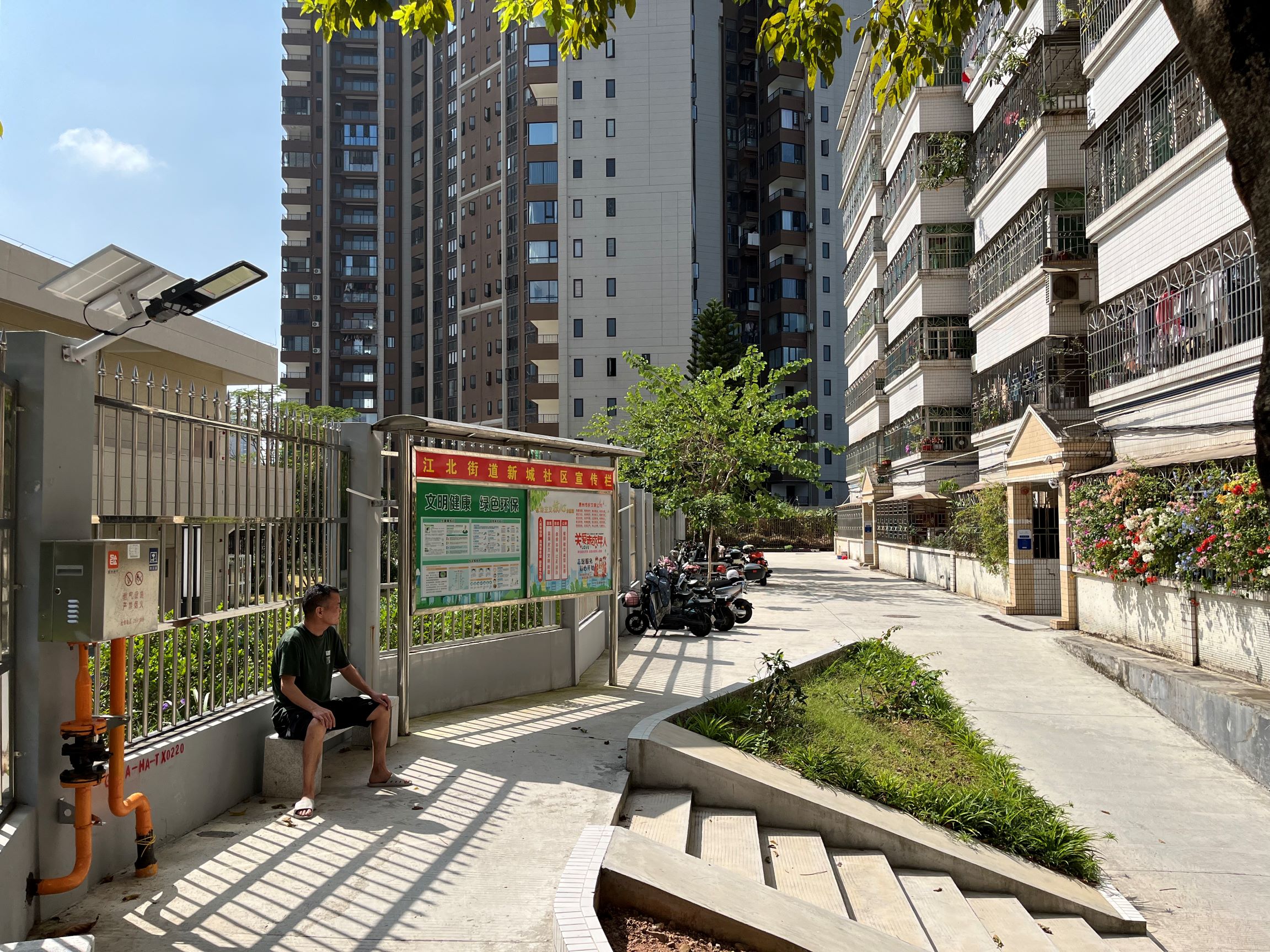 在居民的大力支持下,電動(dòng)自行車停車棚拔地而起,原來僅3米寬的小區(qū)道路,拓寬成消防車、救護(hù)車能夠進(jìn)入的6米“生命通道”。此外,社區(qū)還將新騰出的空地盤活,主動(dòng)對(duì)接施工單位規(guī)劃休閑廣場(chǎng),打造居民“家門口”的休閑娛樂場(chǎng)所。經(jīng)過幾個(gè)月的改造,昔日基礎(chǔ)設(shè)施滯后、環(huán)境臟亂差的老爹嶺正逐步蛻變成管理規(guī)范、干凈有序、充滿生機(jī)與活力的幸福小區(qū)。