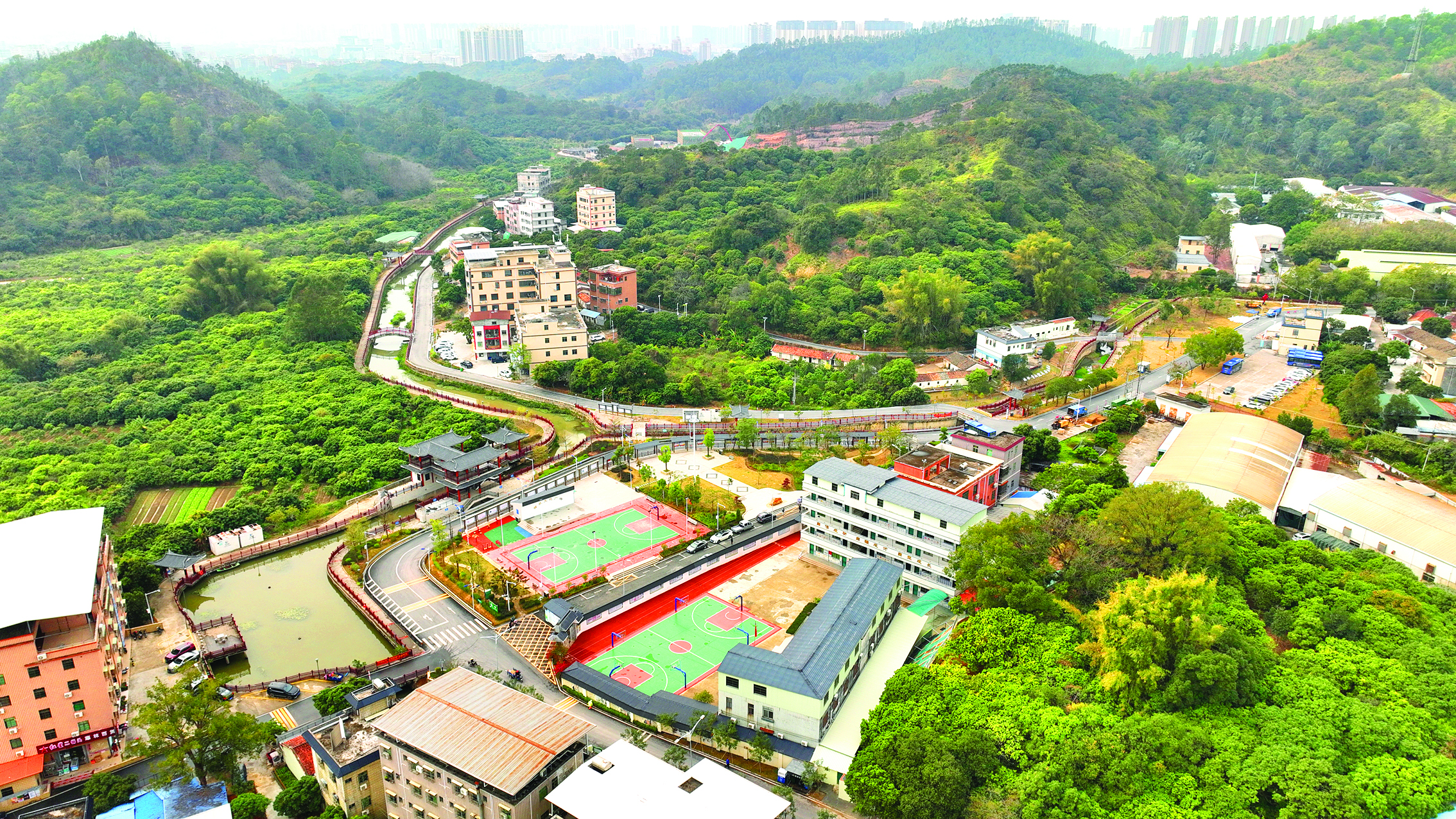 美麗鄉(xiāng)景與現(xiàn)代產(chǎn)業(yè)園區(qū)相互映襯的惠環(huán)街道西坑村。惠州日?qǐng)?bào)記者鐘暢新 哈鵬 攝