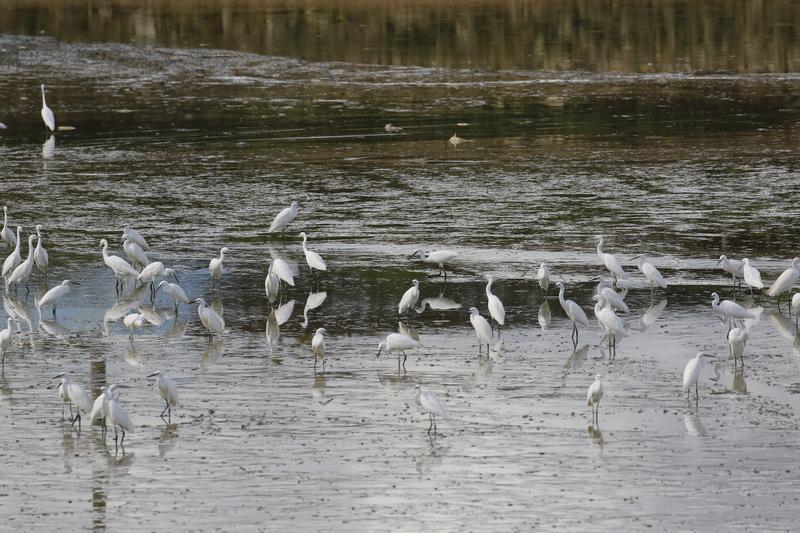 黑臉琵鷺、白琵鷺與其他鷺鳥在潼湖國家濕地公園和諧共處。 通訊員袁倩敏 攝
