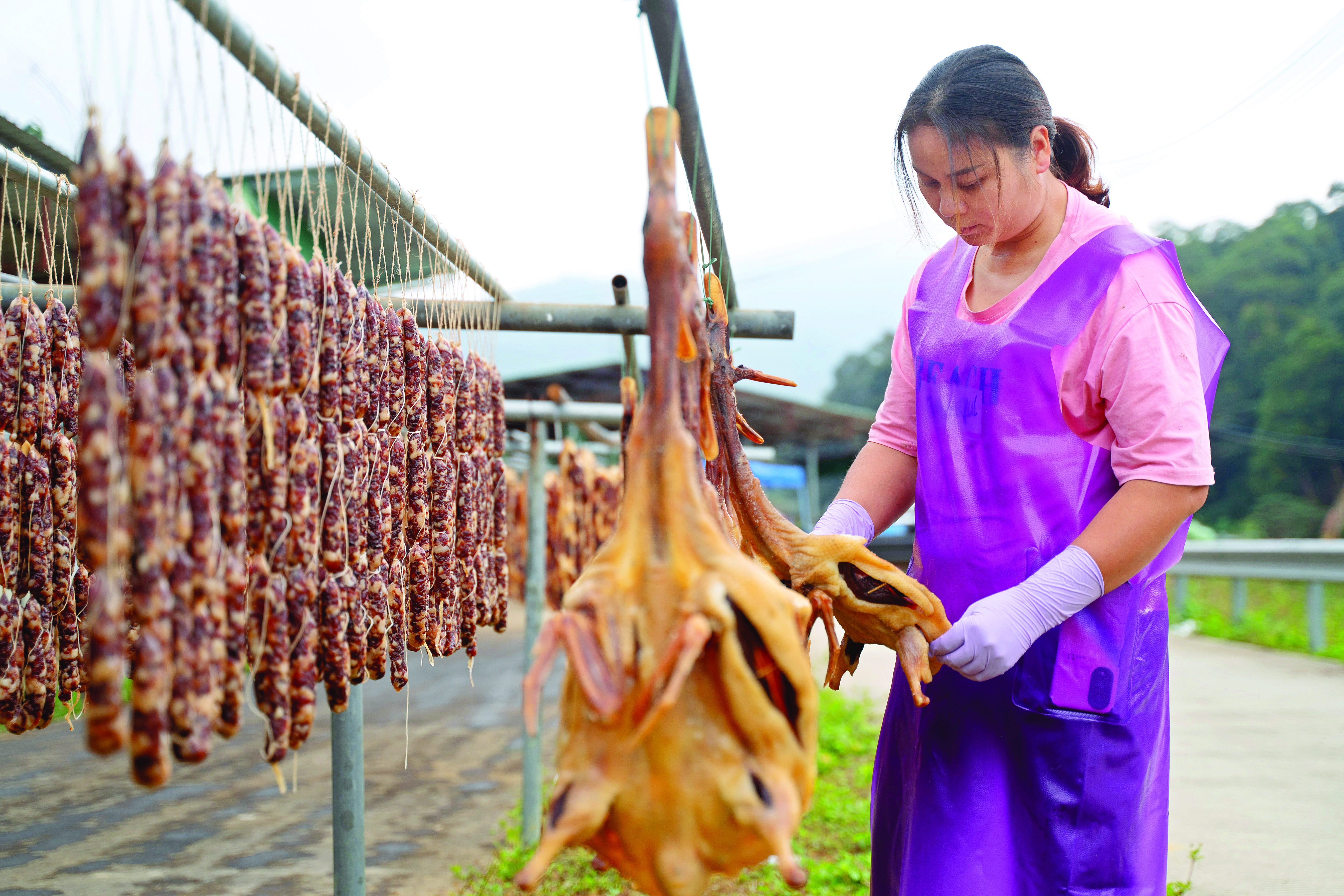 酥醪臘味、仙人菜、腐竹、甜茶……到此游玩的游客,都會挑一些農(nóng)特產(chǎn)品帶回家。鄉(xiāng)村旅游的發(fā)展,進一步帶動了酥醪村農(nóng)特產(chǎn)品的銷售。而依托電商平臺的發(fā)展、交通物流的便利,酥醪特產(chǎn)搭上了“網(wǎng)絡(luò)快車”,走出大山,暢銷珠三角,成為酥醪村村民增收的新增長點。