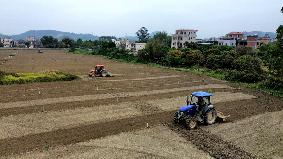 春來風(fēng)光好,田間備耕忙。3月14日,惠陽區(qū)良井鎮(zhèn)矮光村機(jī)器轟鳴、熱鬧非凡。一頭頭“鐵牛”準(zhǔn)時(shí)赴約,在千畝良田中奮蹄穿行,翻新沃土等待播種。縱橫交錯(cuò)的田埂猶如一行行五線譜,譜寫著搶抓農(nóng)時(shí)忙春耕的“進(jìn)行曲”。