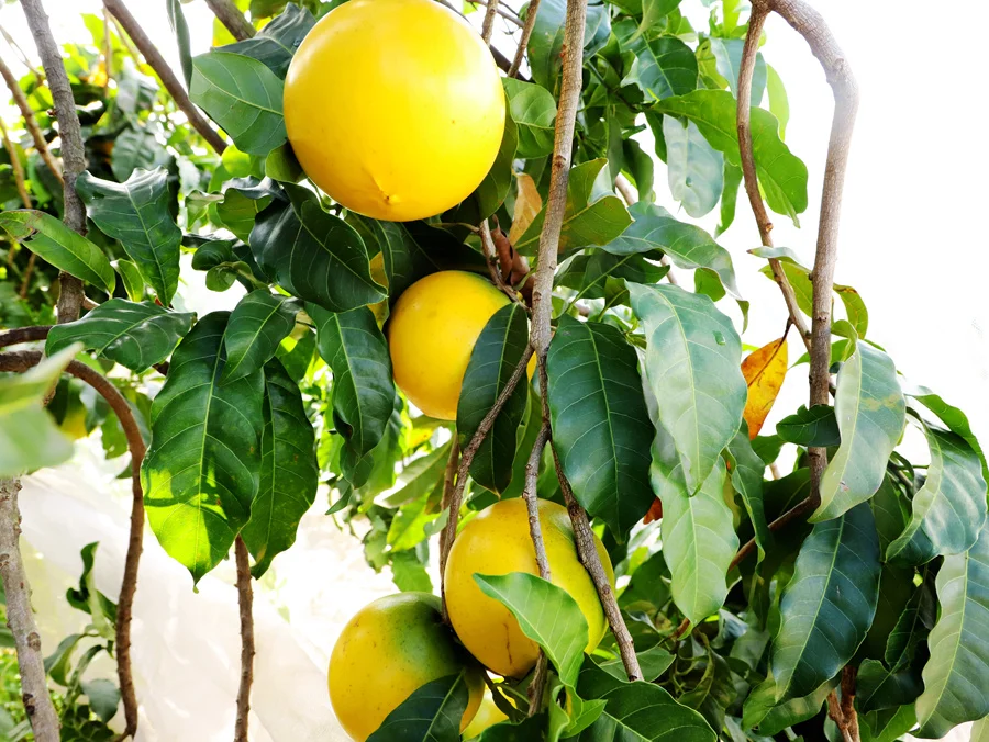 “經(jīng)過(guò)嫁接后,次年就可以掛果,而且產(chǎn)量會(huì)逐年增高。”徐蘭治說(shuō),黃晶果一年掛果兩次,7月中旬到9月為一季,12月底至次年1月會(huì)再次結(jié)果。黃晶果還屬于高產(chǎn)果樹(shù),一棵進(jìn)入豐產(chǎn)期的果樹(shù)可以結(jié)出100多個(gè)果實(shí),單果重量在六兩到一斤出頭,最重的能達(dá)到兩斤。