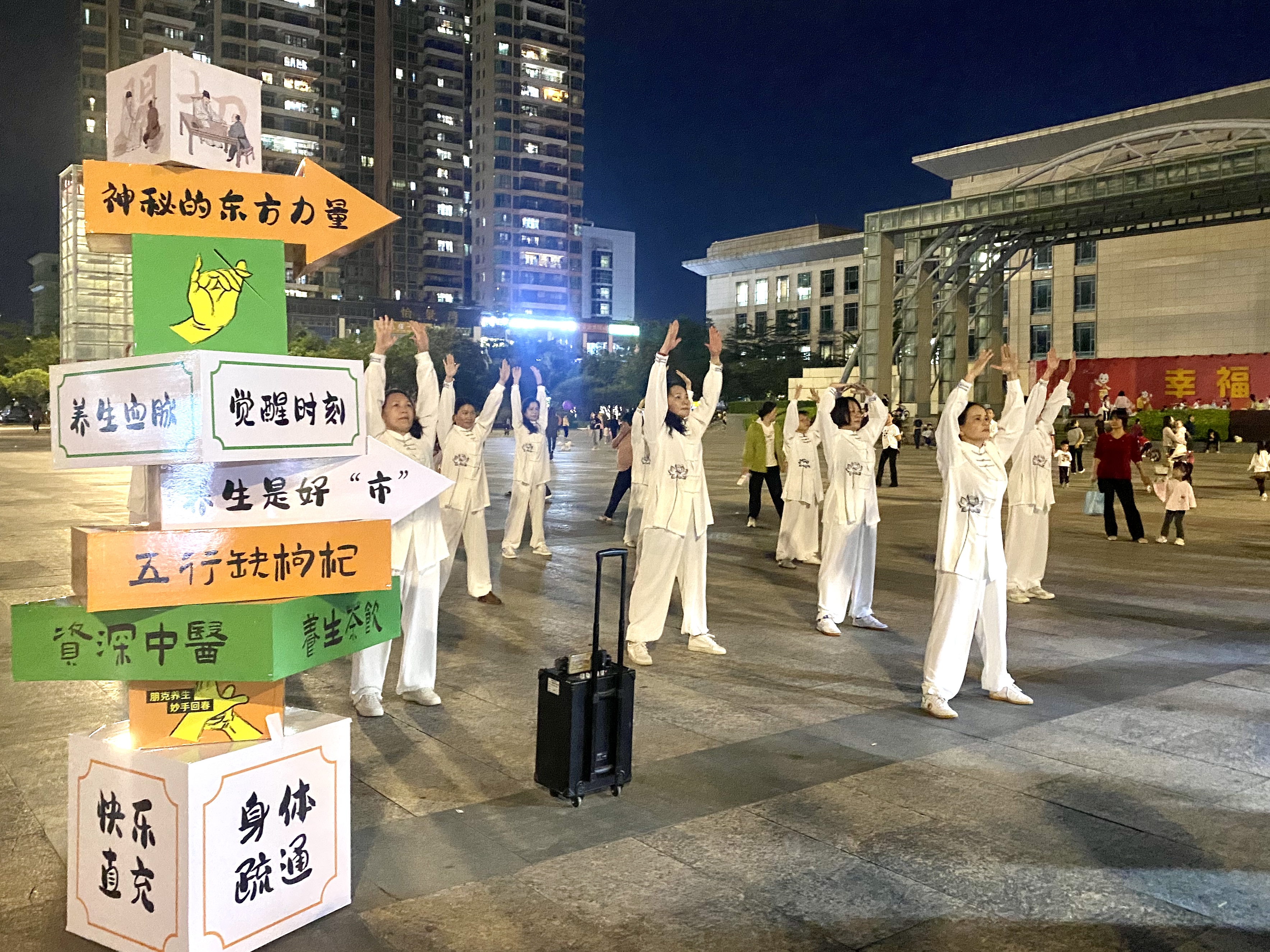 青年健康夜市八段錦健身操展演現(xiàn)場。 惠州日報記者洪鵲兒 通訊員張惟 郭欣璐 攝
