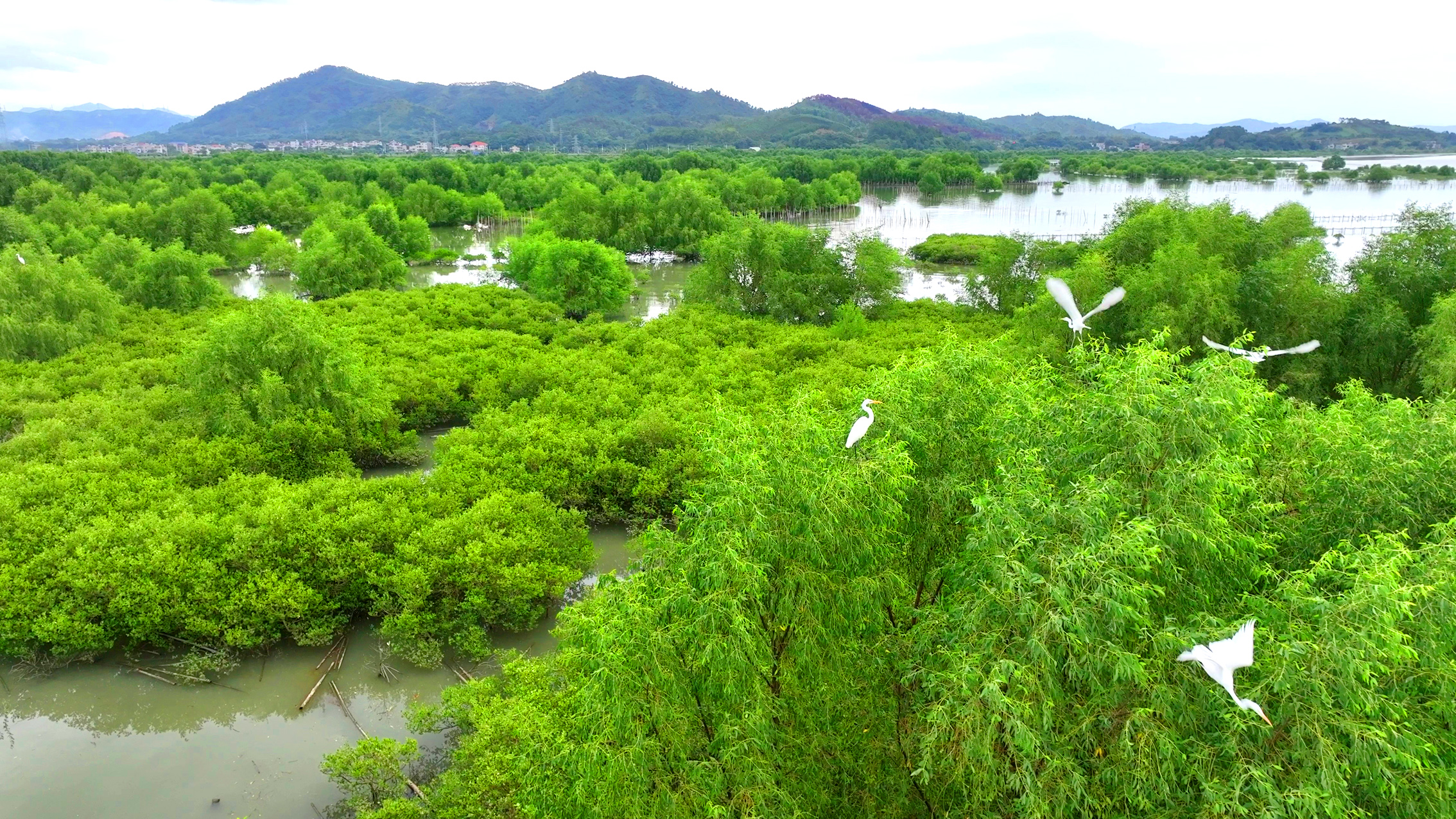 紅樹林內(nèi)蝦蟹嬉戲、魚躍捕食、鷺鳥起舞……如今,考洲洋生態(tài)環(huán)境逐漸好轉(zhuǎn),水質(zhì)均值符合Ⅱ類海水水質(zhì)標(biāo)準(zhǔn)。目前,惠東縣紅樹林區(qū)有紅樹植物15種、鳥類140多種。其中,9種為國家二級保護(hù)動物。